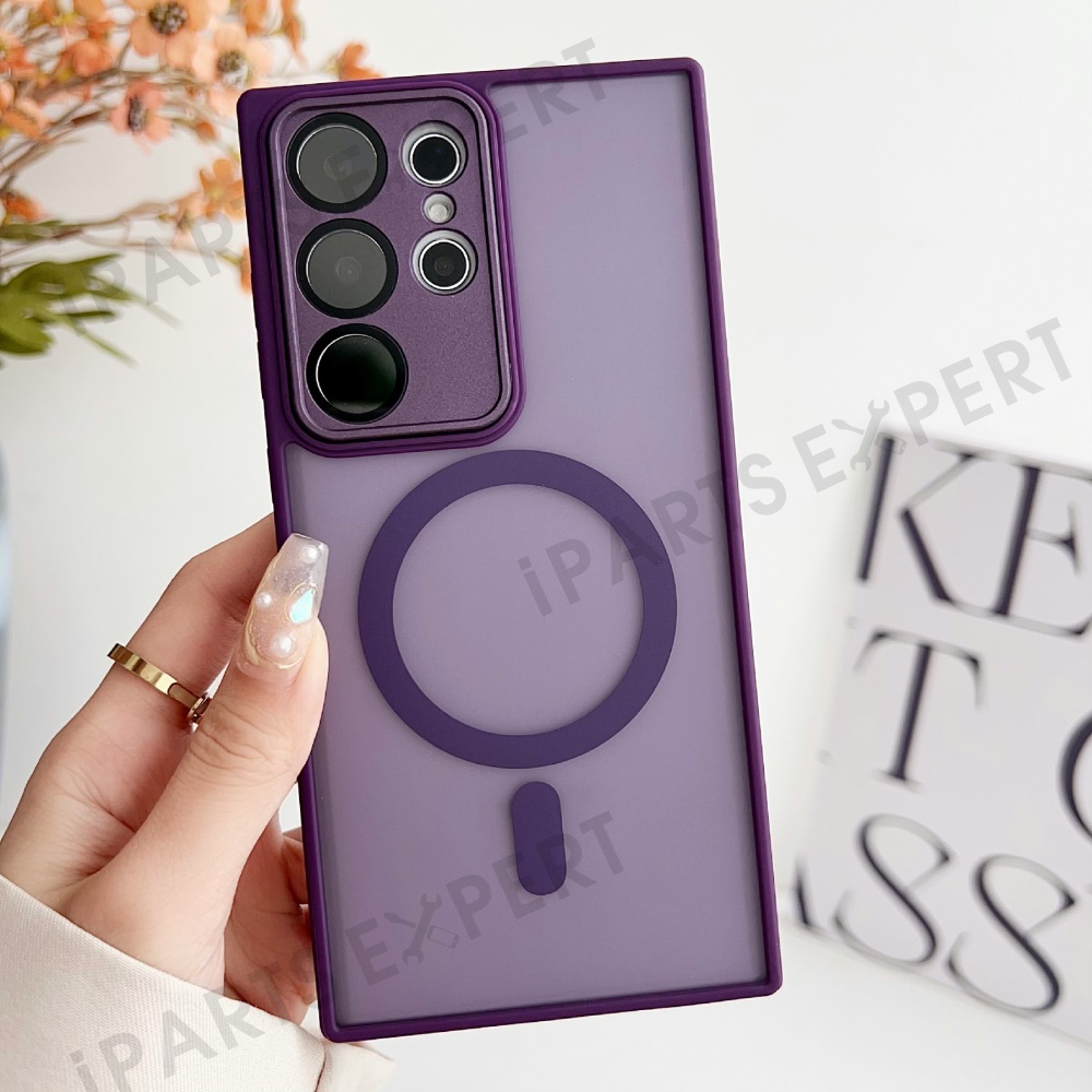 For Samsung Galaxy S25 Ultra Magnetic Case with Lens Film Skin Touch TPU + PC Phone Back Cover - Dark Purple