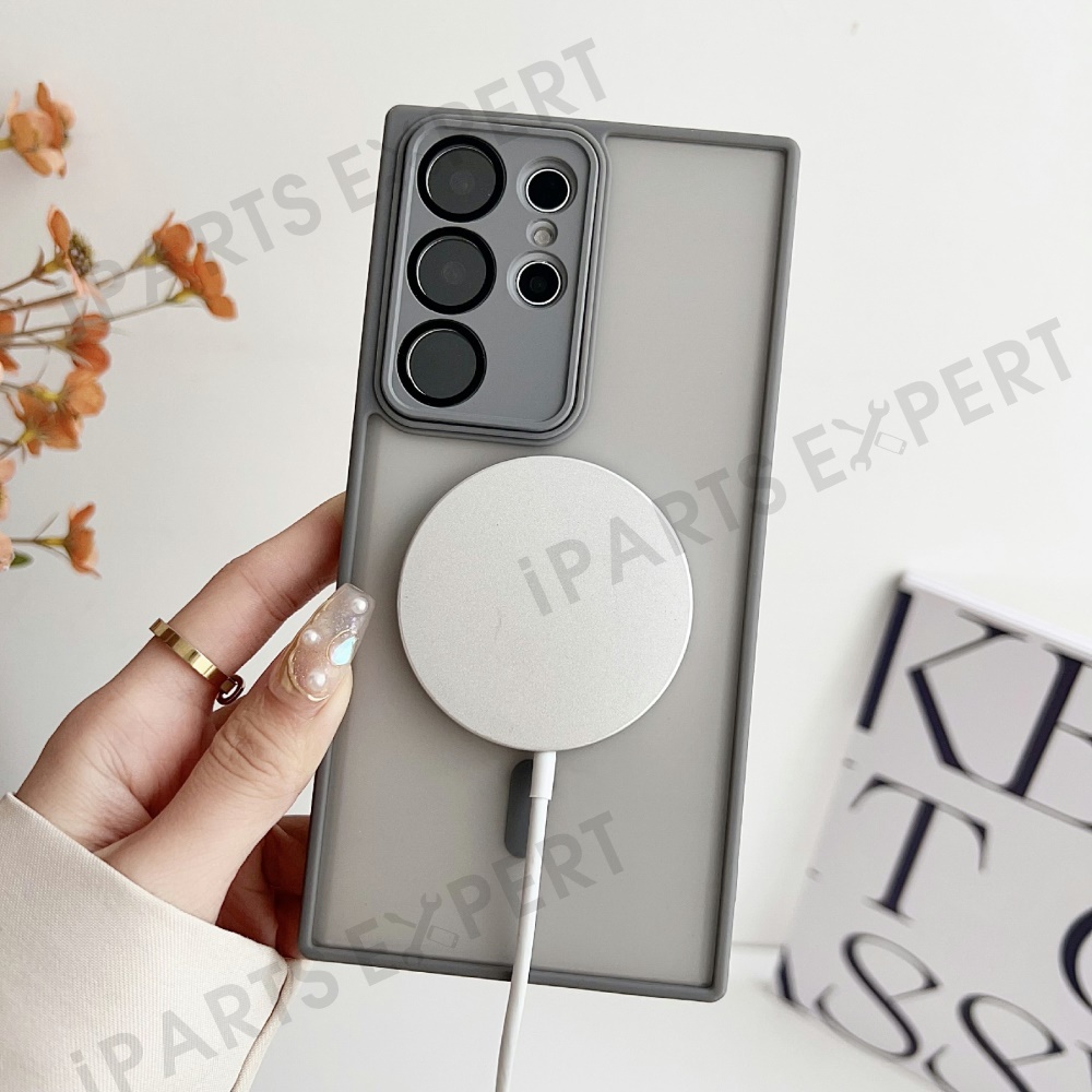 For Samsung Galaxy S25 Ultra Magnetic Case with Lens Film Skin Touch TPU + PC Phone Back Cover - Pink