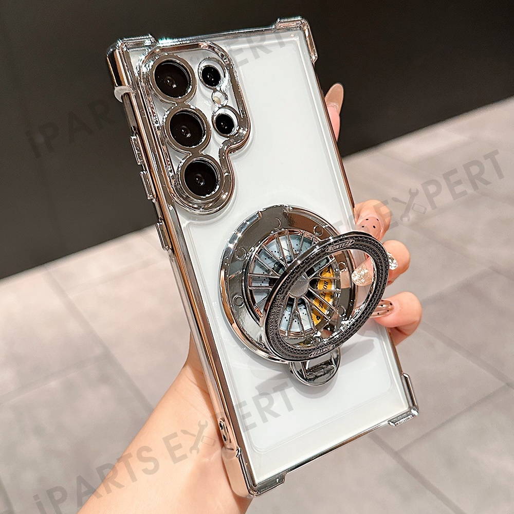 For Samsung Galaxy S25 Ultra Phone Case Gyroscope Kickstand Electroplating TPU PC Mobile Cover - Silver