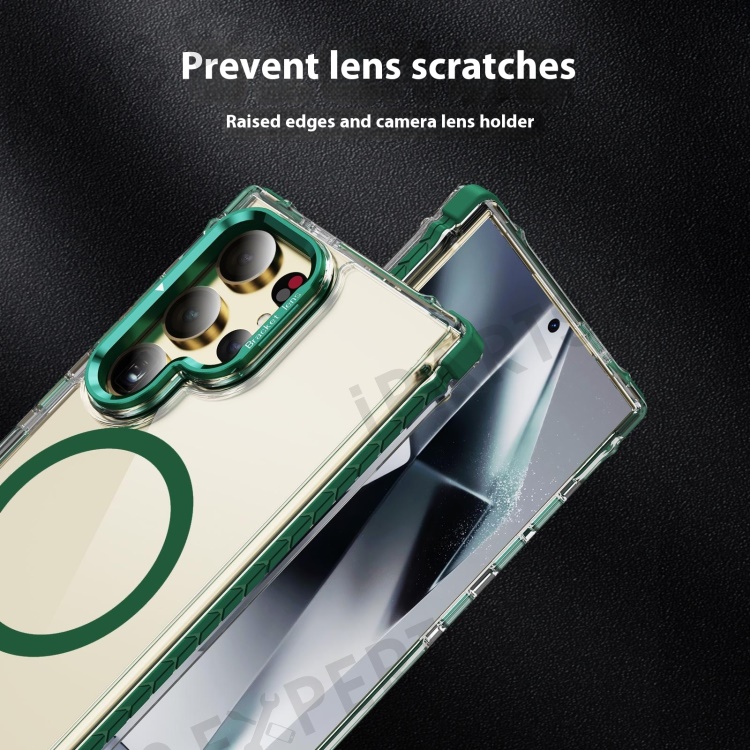 For Samsung Galaxy S25 Ultra Phone Case with Lens Kickstand Clear Cover Magnetic Case - Green