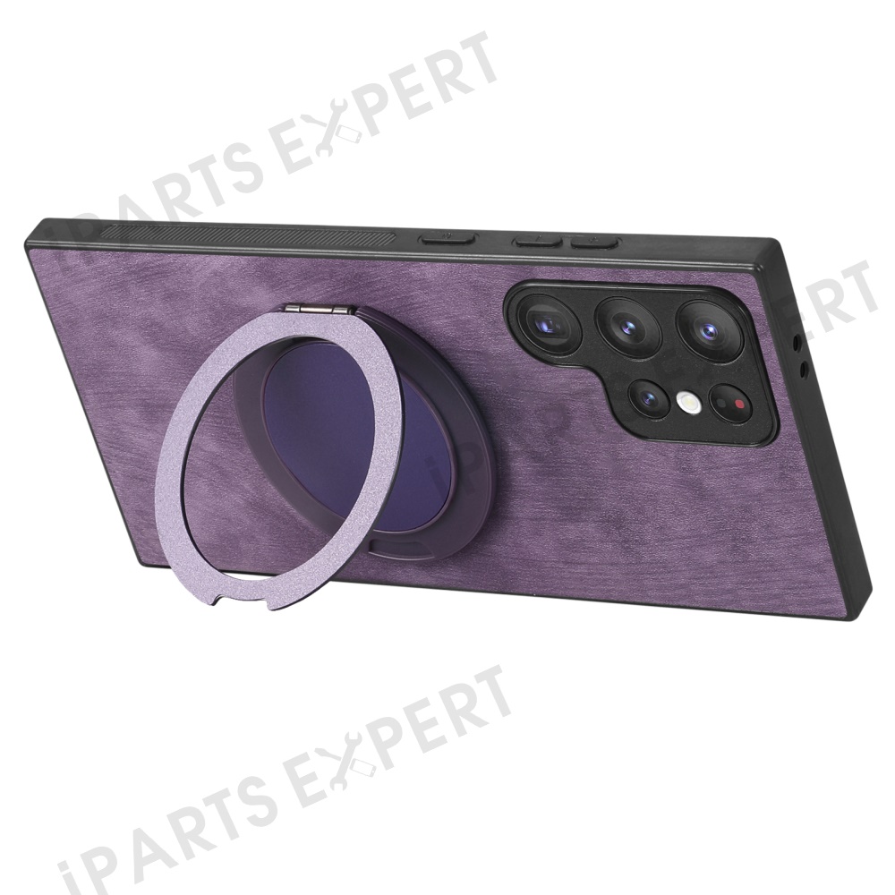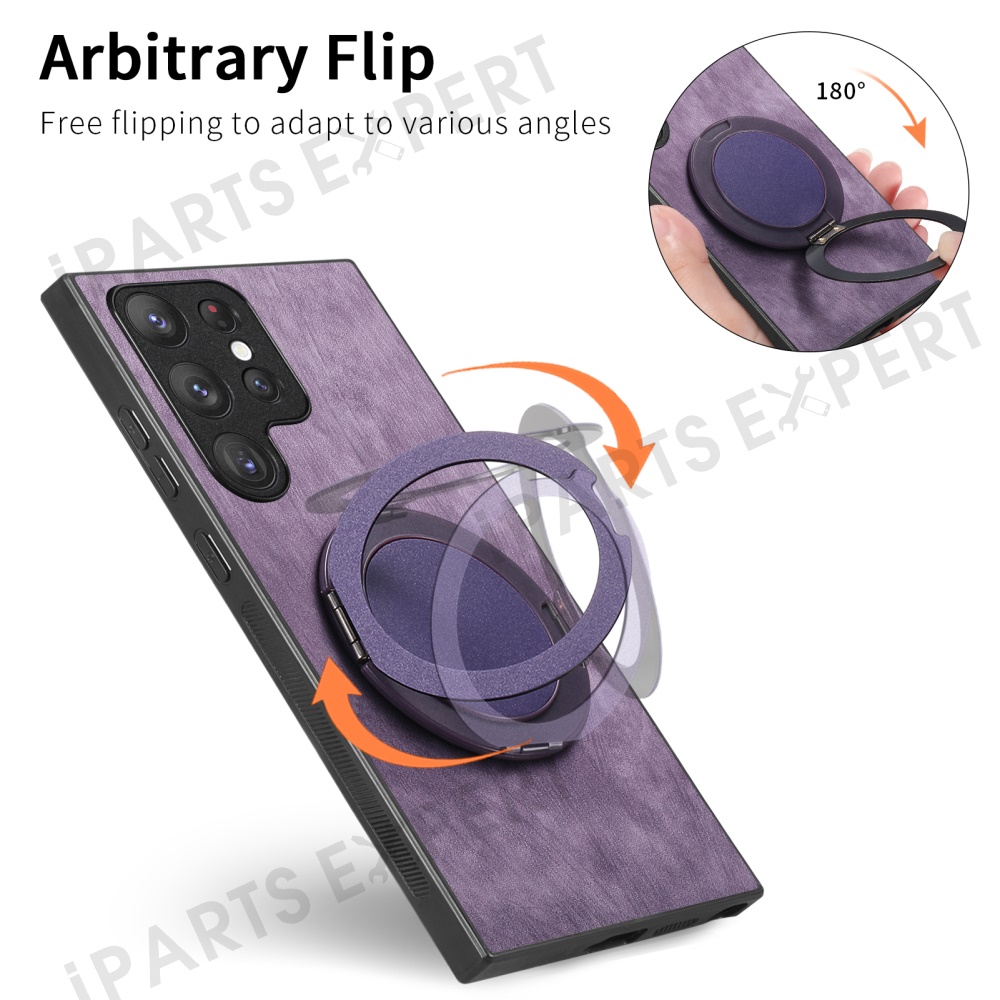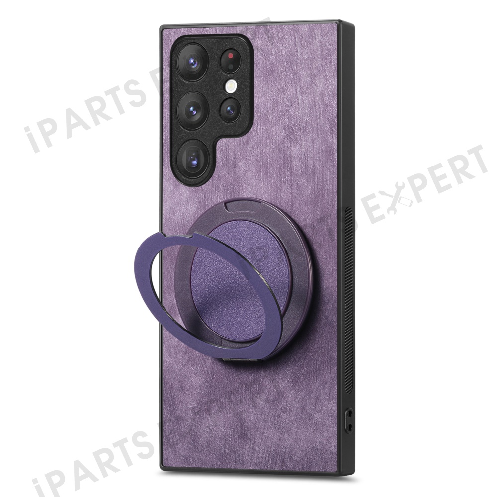 For Samsung Galaxy S25 Ultra Phone Case with Rotating Kickstand Stress Relief Retro Leather Back Cover - Purple