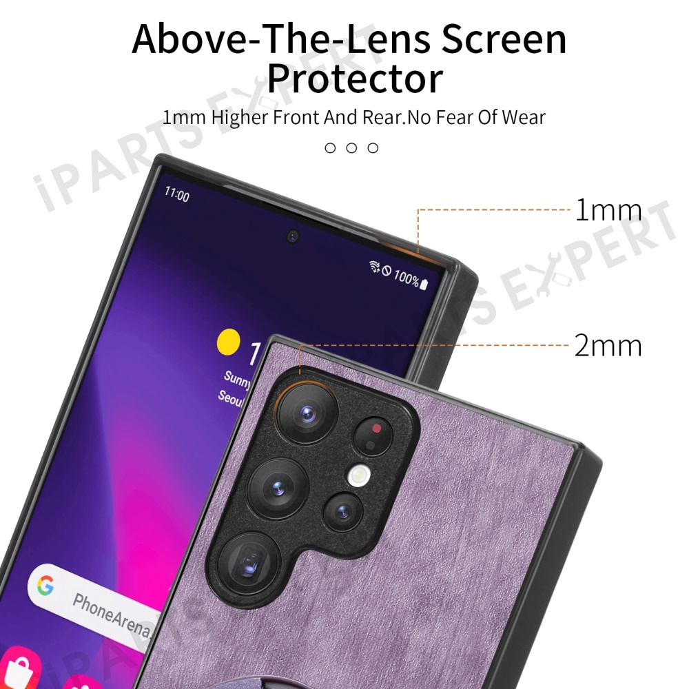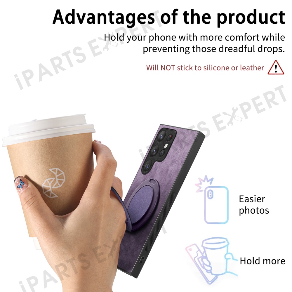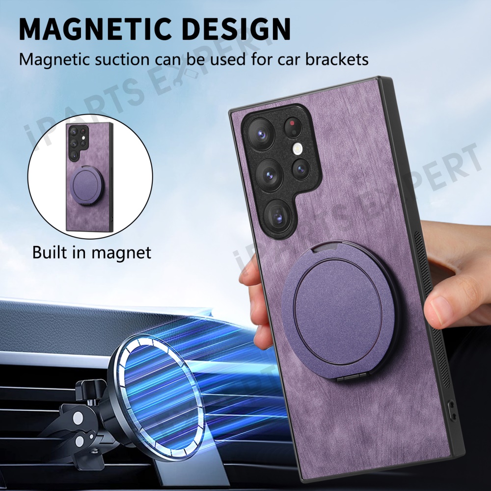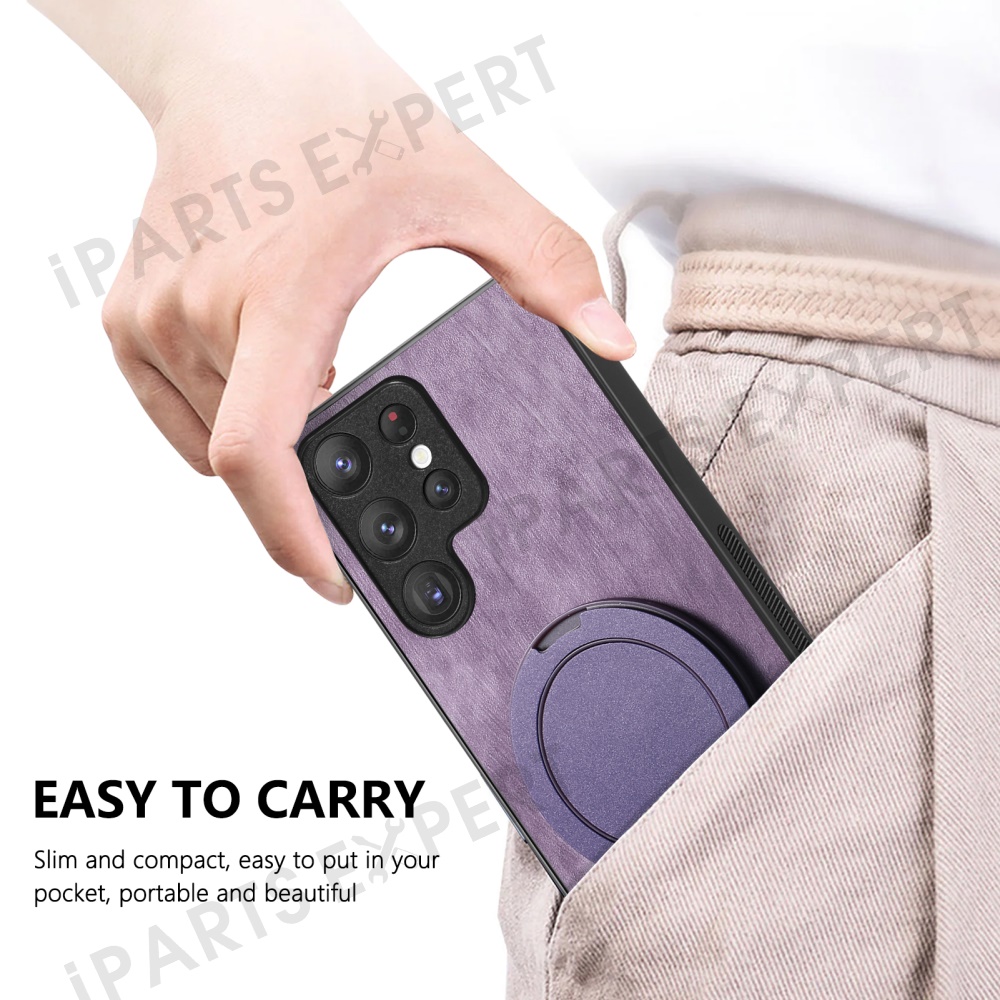 For Samsung Galaxy S25 Ultra Phone Case with Rotating Kickstand Stress Relief Retro Leather Back Cover - Purple