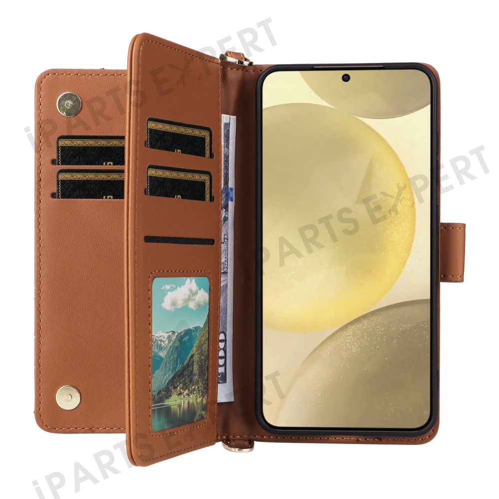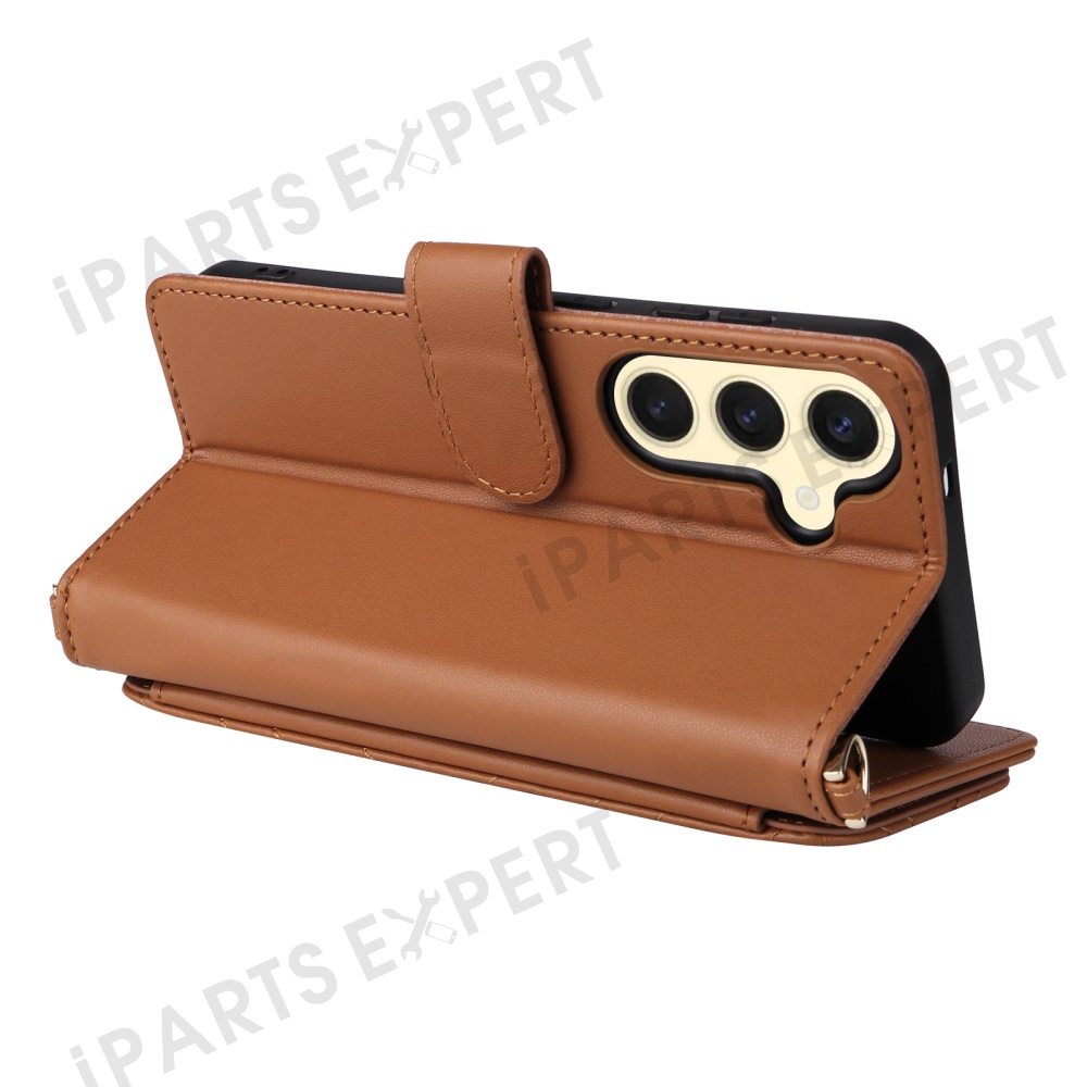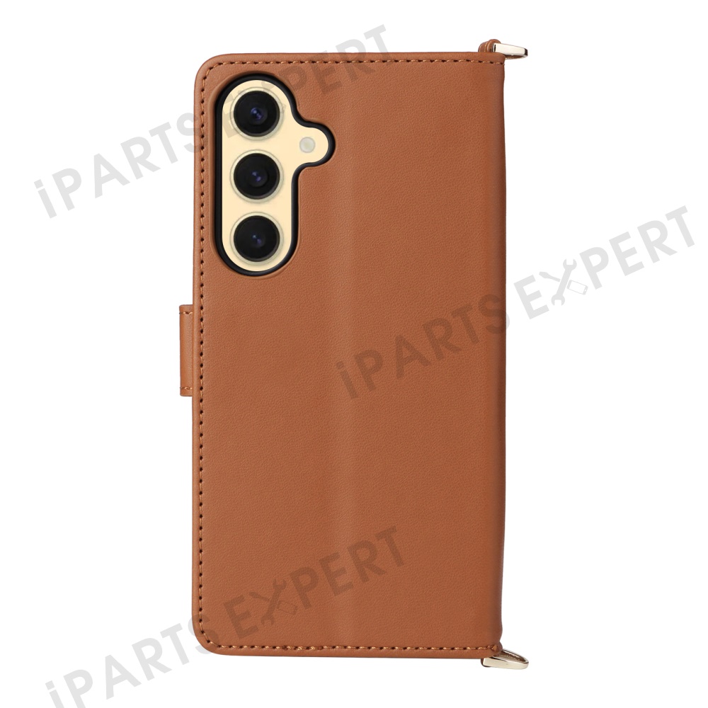 For Samsung Galaxy S25+ Wallet Case with Shoulder / Wrist Strap Leather Phone Cover Stand - Brown