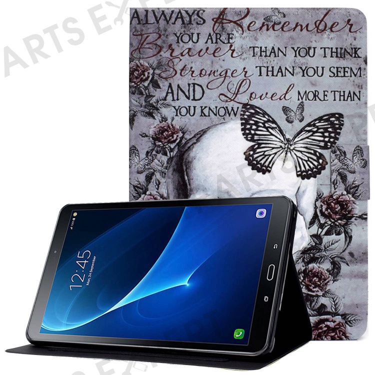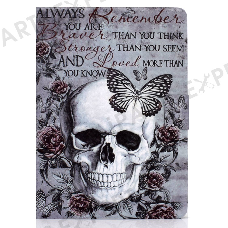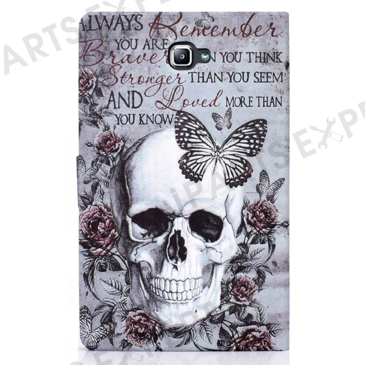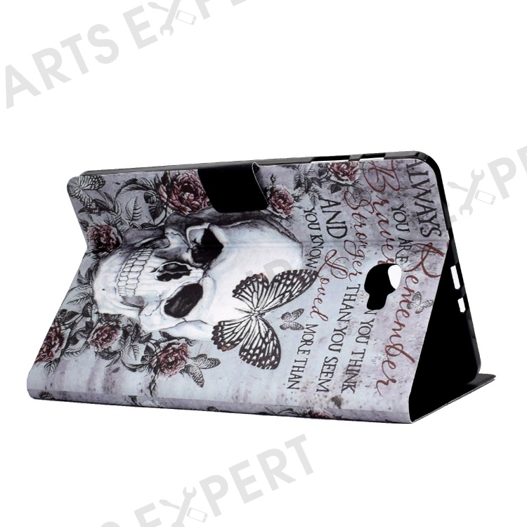 For Samsung Galaxy Tab A 10.1 (2016) T580 / T585 Pattern Printing PU Leather Stand Cover Tablet Anti-drop Case with Card Slots - Skull