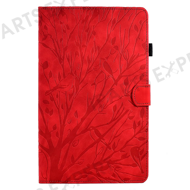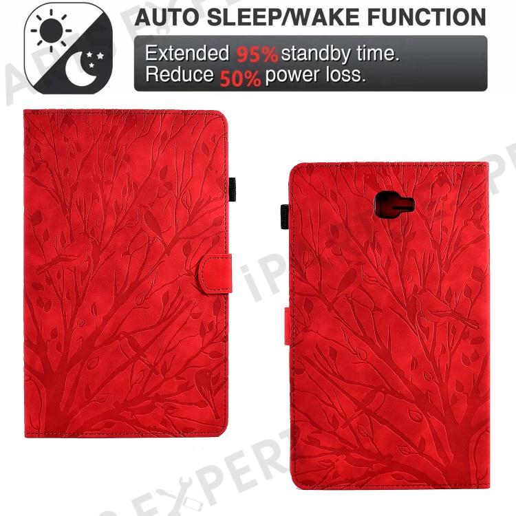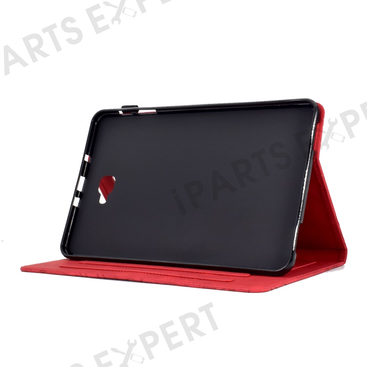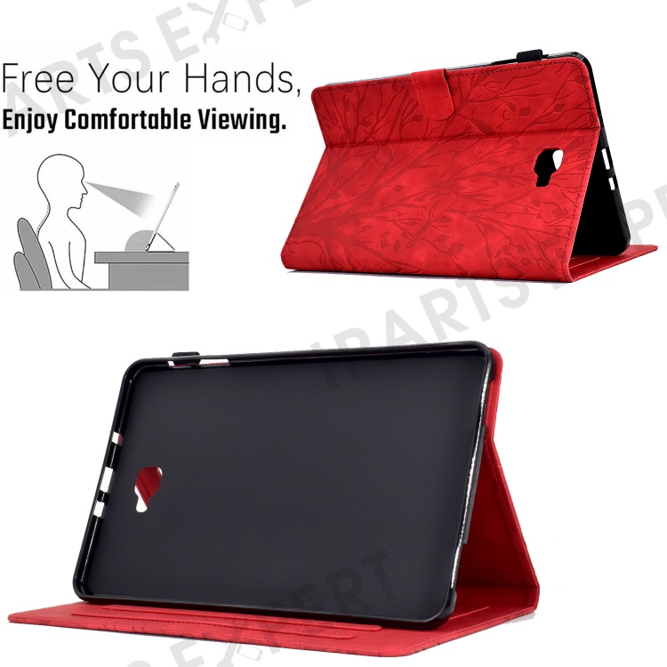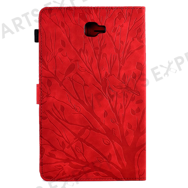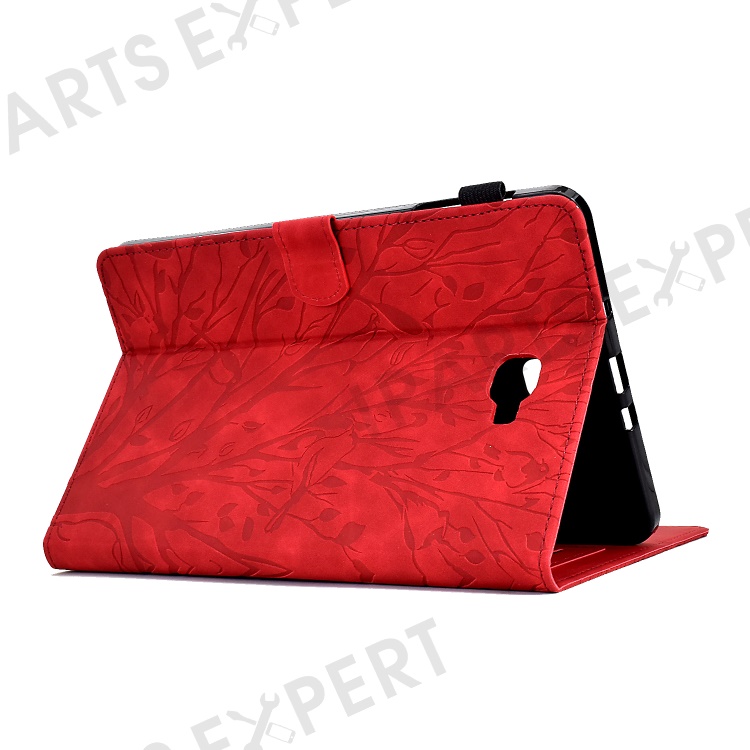 For Samsung Galaxy Tab A 10.1 (2016) T580 T585 PU Leather Tablet Stand Case Imprinted Tree Card Holder Cover - Red