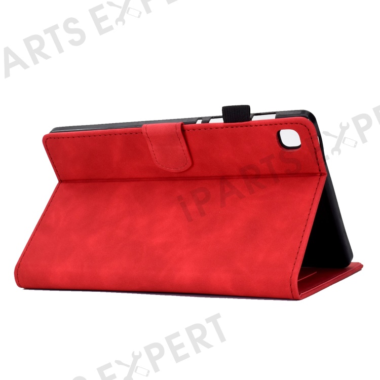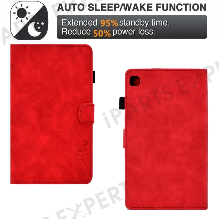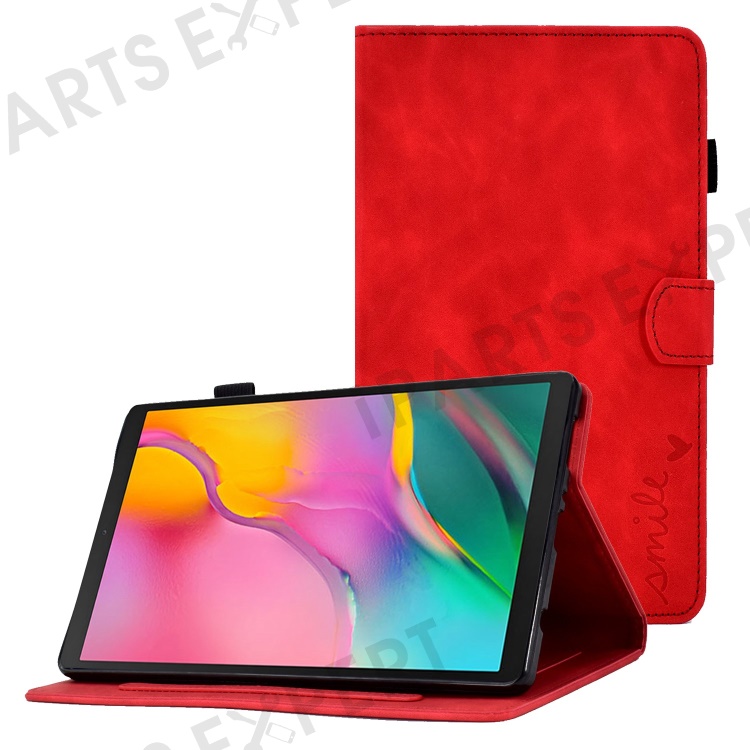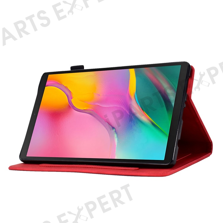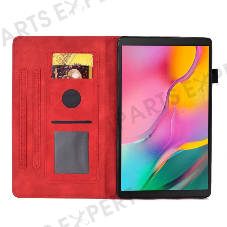 For Samsung Galaxy Tab A 10.1 (2019) SM-T510 PU Leather Tablet Case Card Slots Folio Stand Pattern Imprinted Cover with Pencil Holder, Auto Wake / Sleep - Red