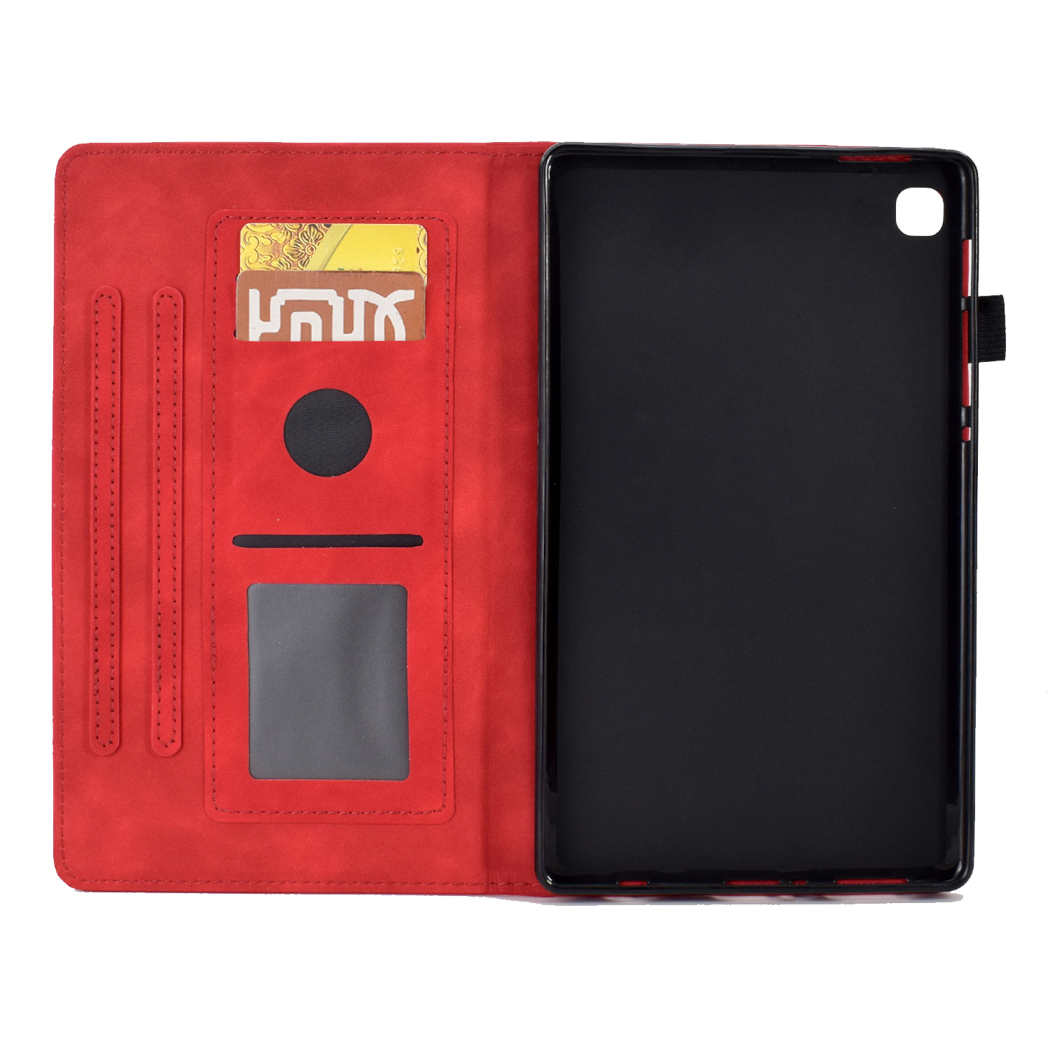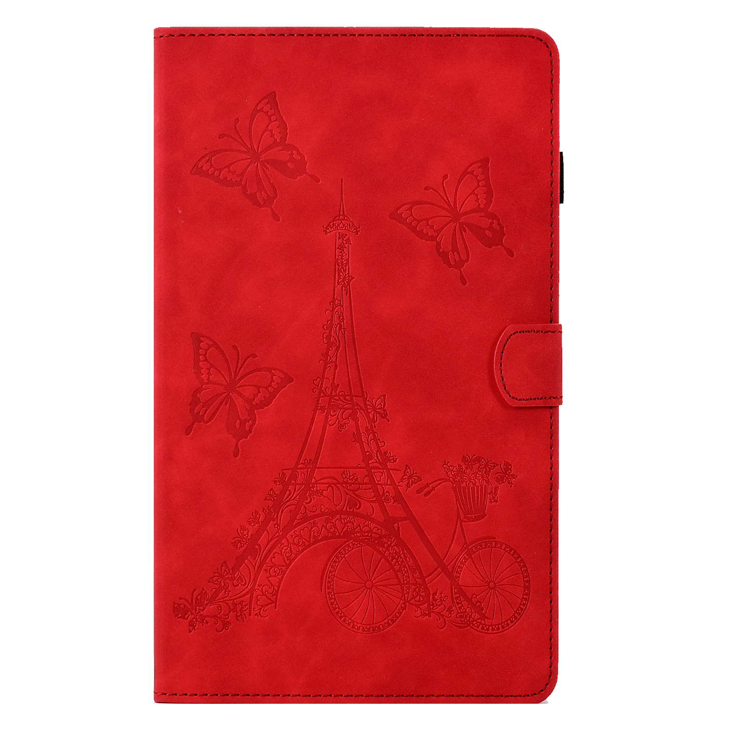 For Samsung Galaxy Tab A 8.0 (2019) SM-T290 (Wi-Fi) / SM-T295 (LTE) Microfiber Leather Tablet Cover Tower Bike Butterfly Pattern Imprinted Stand Card Holder Case - Red