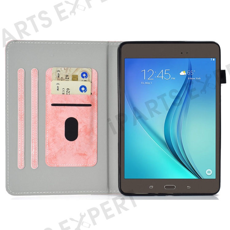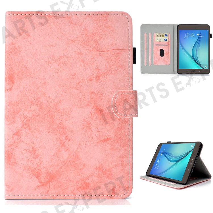 For Samsung Galaxy Tab A 8.0 SM-T350 / T355C (2015) Cloth Texture PU Leather Tablet Case Anti-drop Stand Cover with Card Holder - Pink