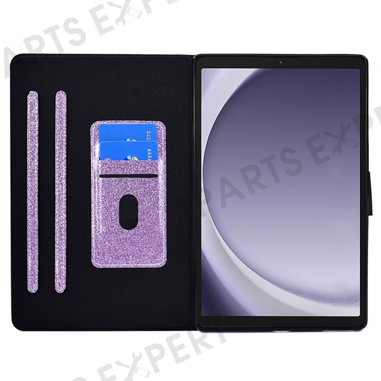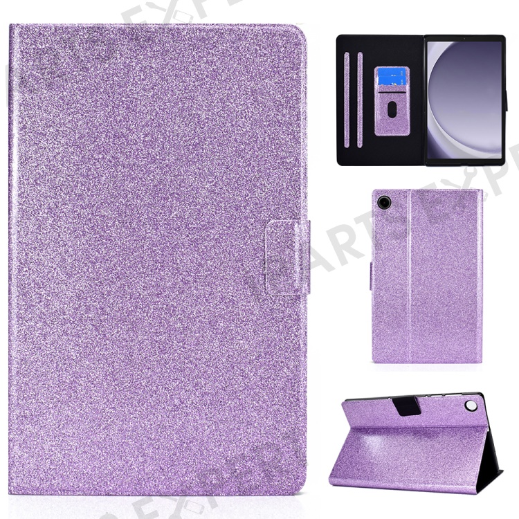For Samsung Galaxy Tab A9+ Glitter PU Leather Case Card Slots Stand Protective Cover - Purple