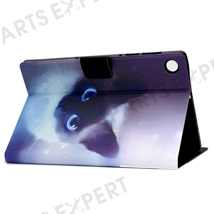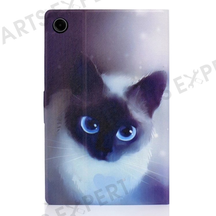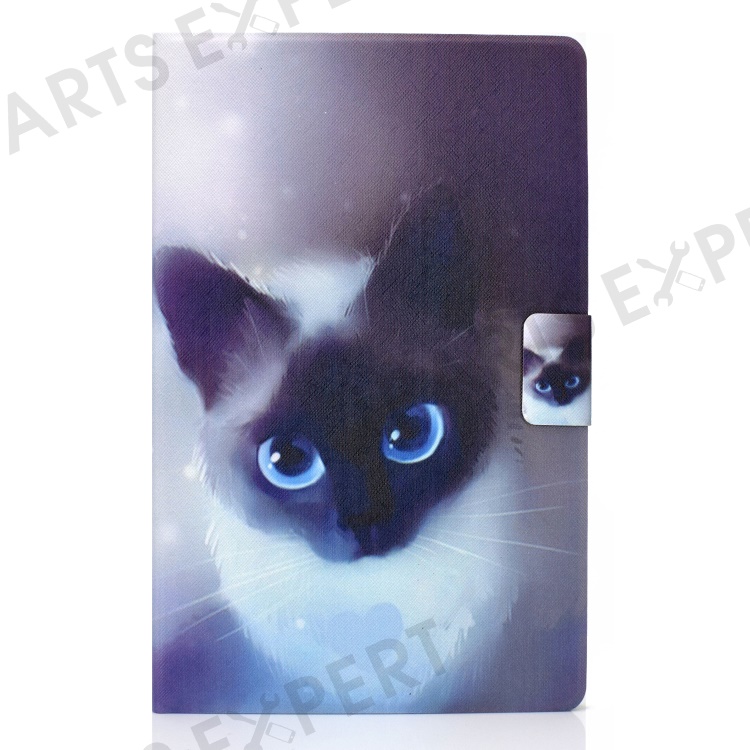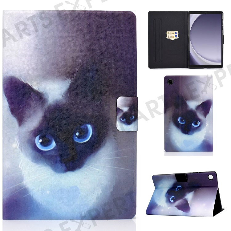For Samsung Galaxy Tab A9+ PU Leather Stand Cover Pattern Printing Tablet Case with Auto Sleep / Wake - Blue Eyes Cat