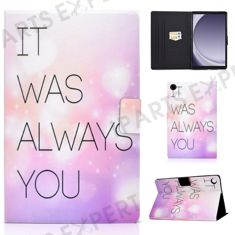 For Samsung Galaxy Tab A9+ PU Leather Stand Cover Pattern Printing Tablet Case with Auto Sleep / Wake - English Letter