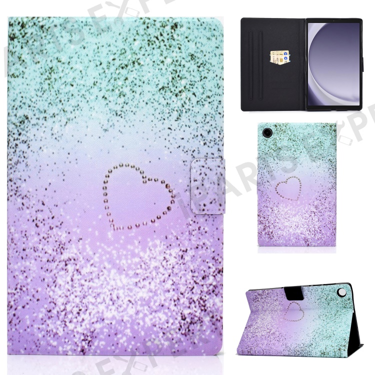 For Samsung Galaxy Tab A9+ PU Leather Stand Cover Pattern Printing Tablet Case with Auto Sleep / Wake - Love Quicksand