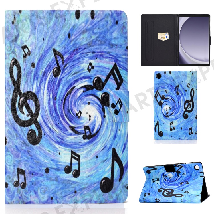For Samsung Galaxy Tab A9+ PU Leather Stand Cover Pattern Printing Tablet Case with Auto Sleep / Wake - Music Score