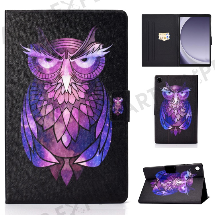 For Samsung Galaxy Tab A9+ PU Leather Stand Cover Pattern Printing Tablet Case with Auto Sleep / Wake - Owl
