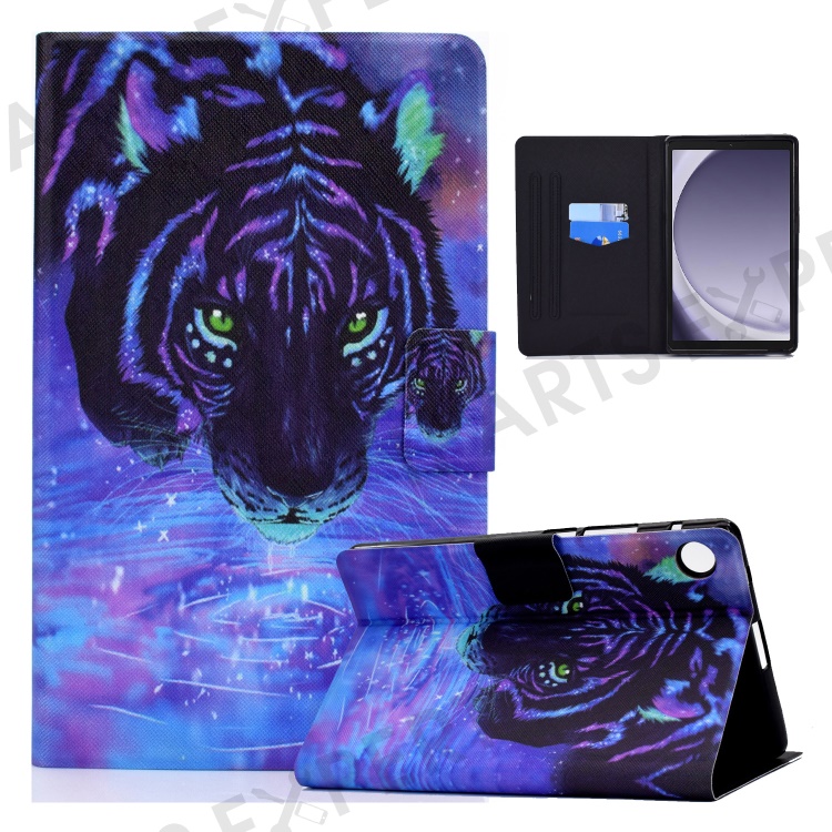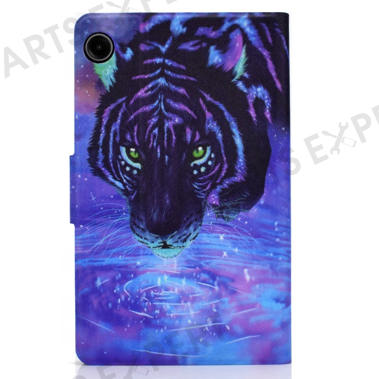 For Samsung Galaxy Tab A9+ PU Leather Stand Cover Pattern Printing Tablet Case with Auto Sleep / Wake - Starry Sky / Tiger