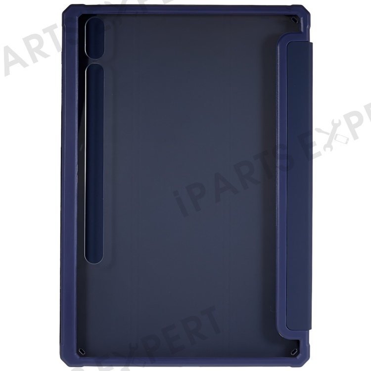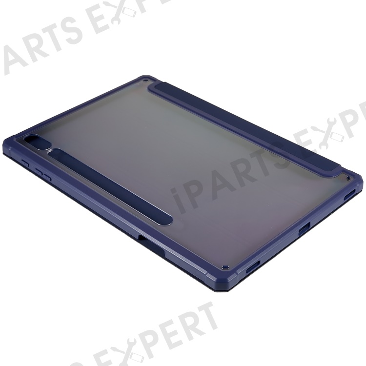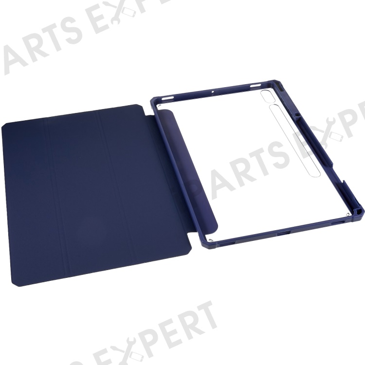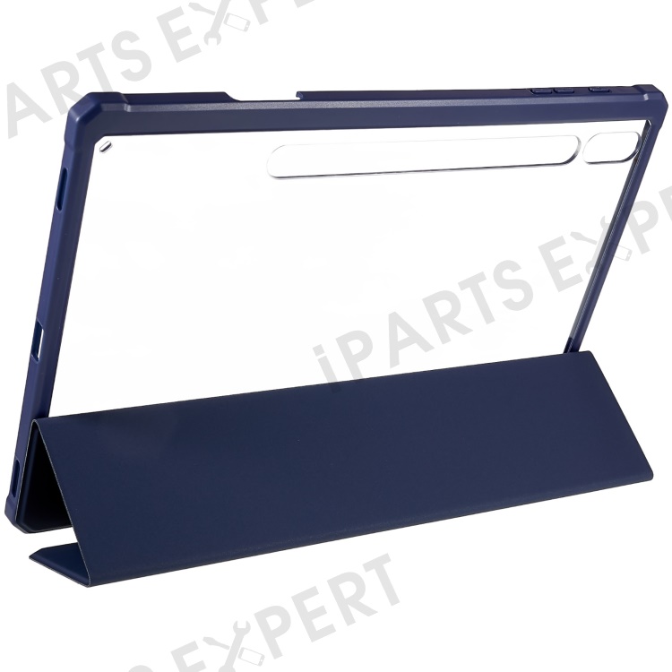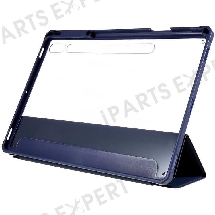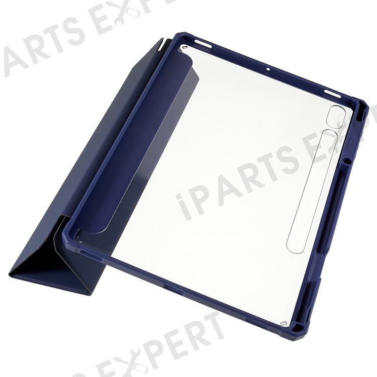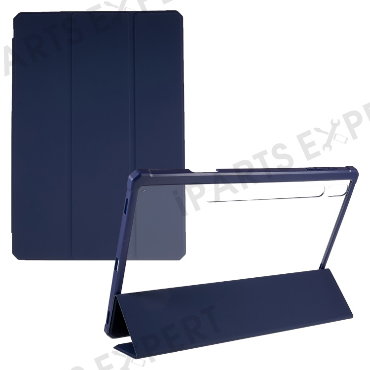 For Samsung Galaxy Tab S10+ / S9+ / S8+ / S7+ / S7 FE Skin-Touch Tri-Fold Stand Tablet Case PU Leather TPU Acrylic Clear Tablet Cover - Blue
