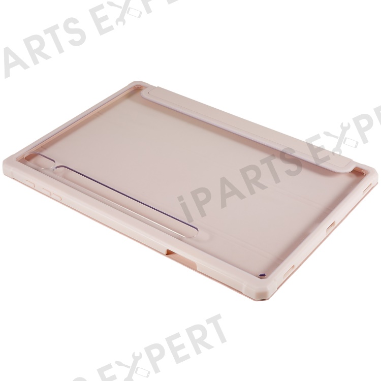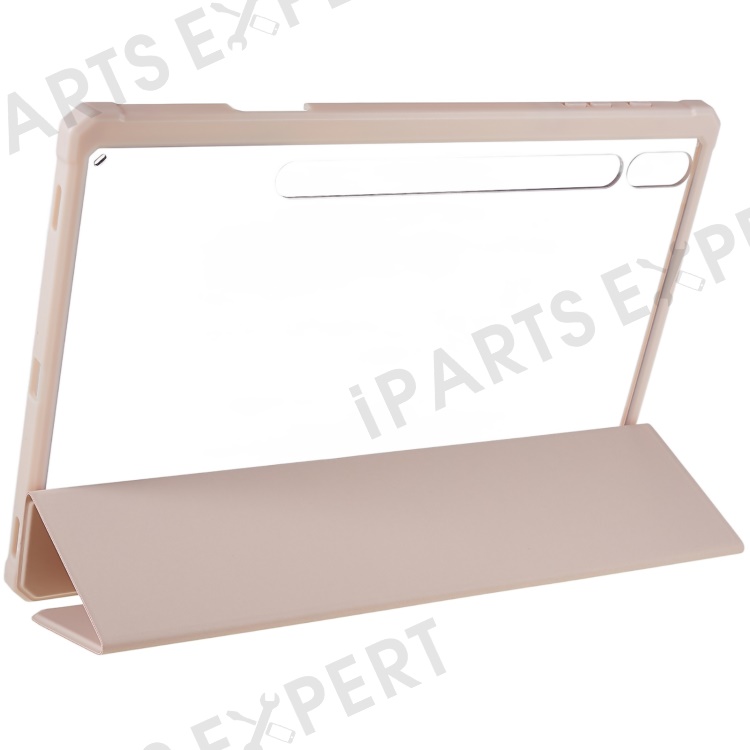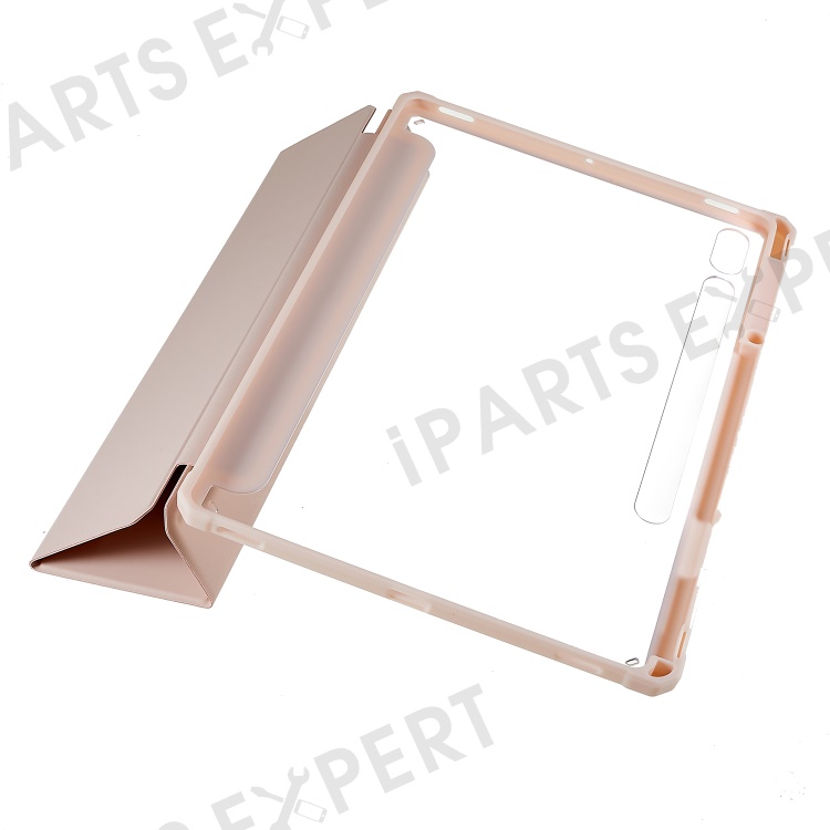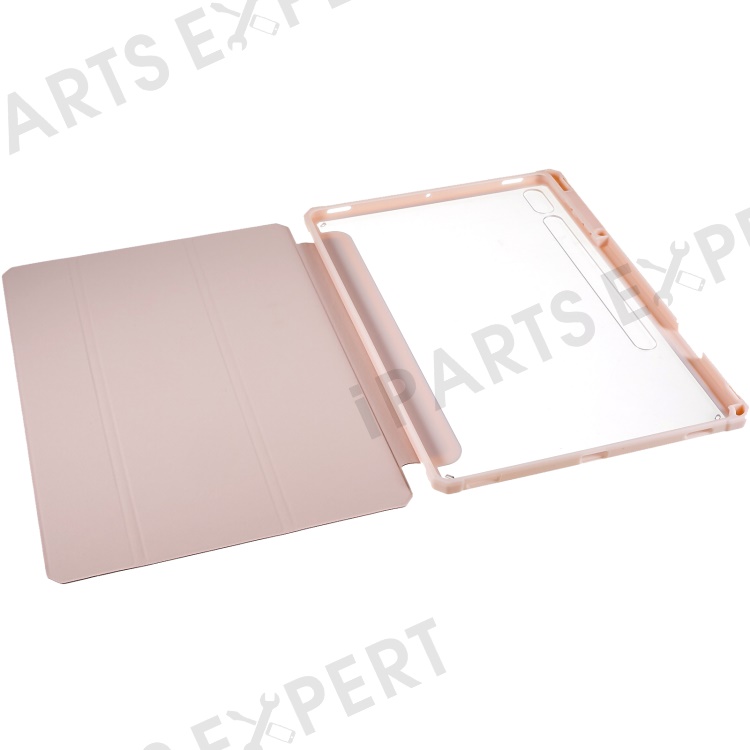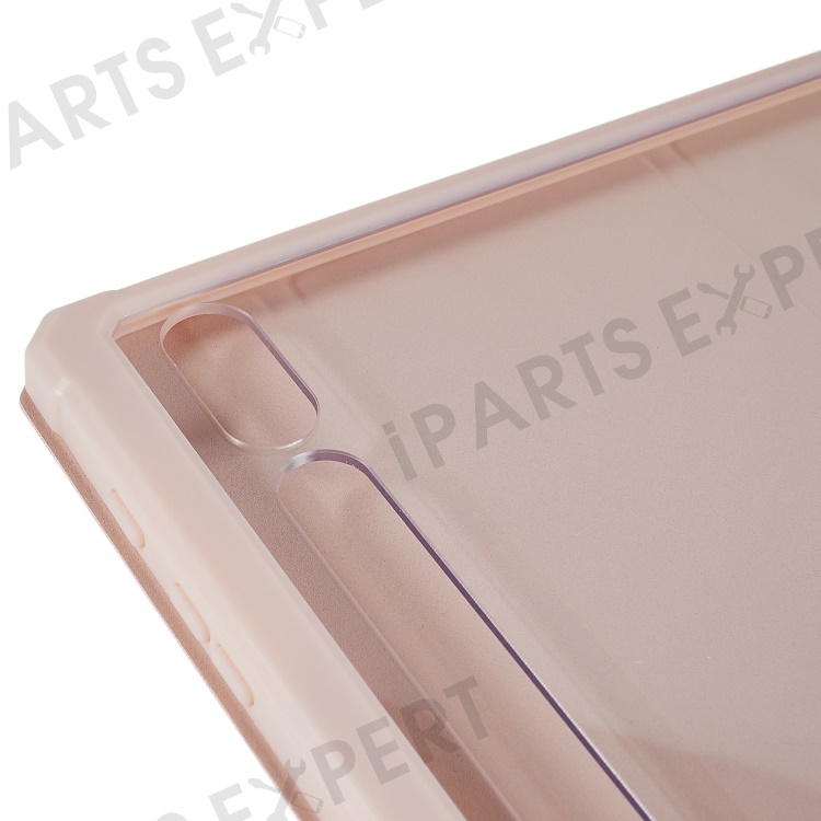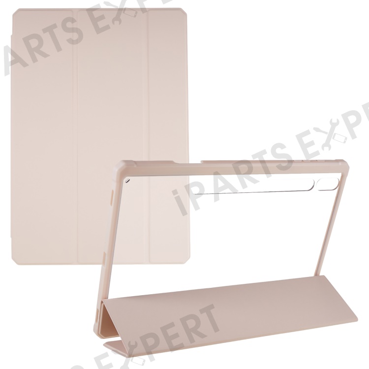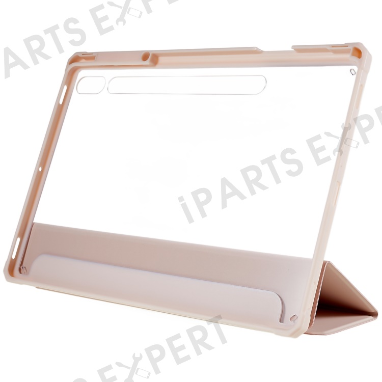 For Samsung Galaxy Tab S10+ / S9+ / S8+ / S7+ / S7 FE Skin-Touch Tri-Fold Stand Tablet Case PU Leather TPU Acrylic Clear Tablet Cover - Pink