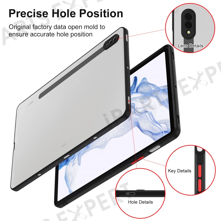 For Samsung Galaxy Tab S7 T870 / Tab S8 X700 Tablet Case Contrast Color PC+TPU Matte Cover - Black