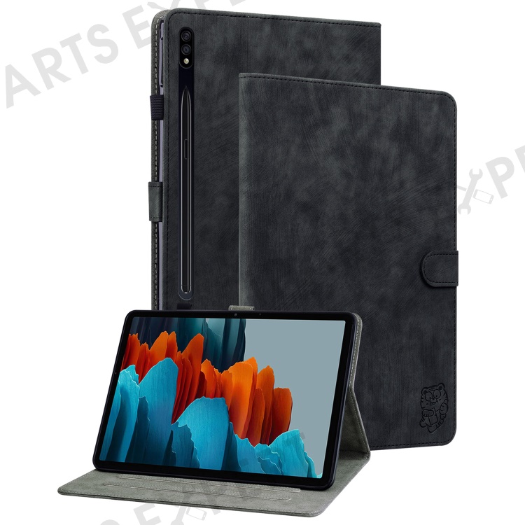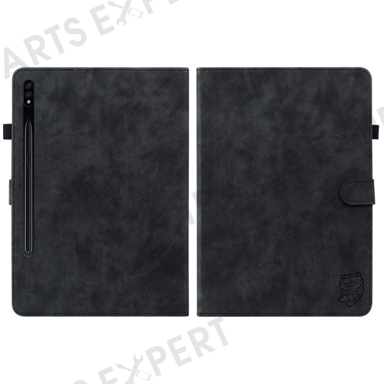 For Samsung Galaxy Tab S10+ / S9+ Imprinted Cute Tiger Pattern Tablet Case PU Leather Card Holder Stand Cover - Black