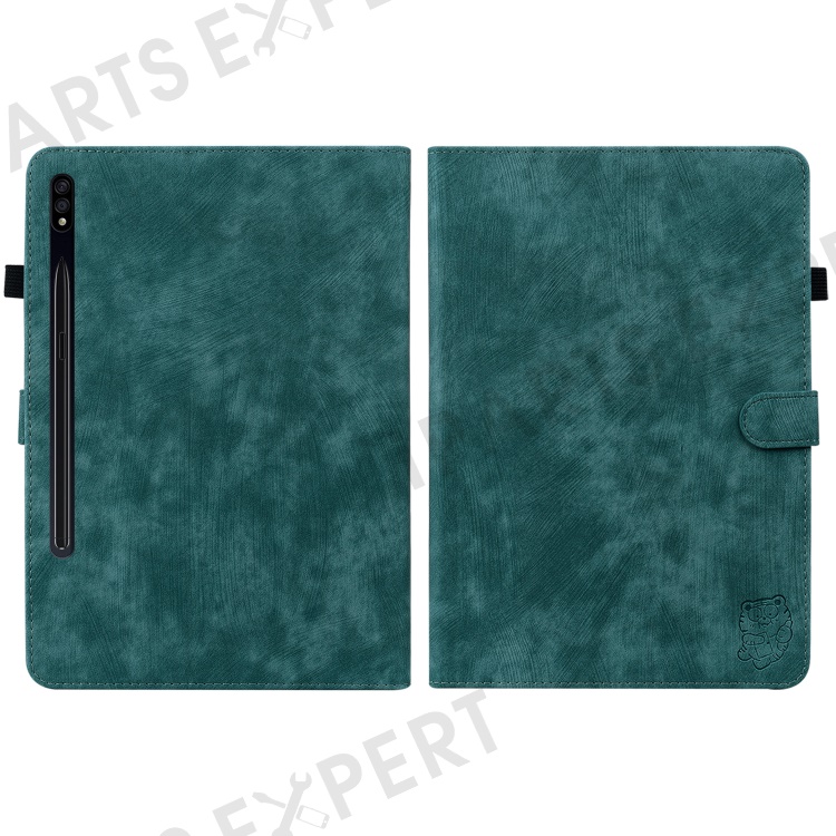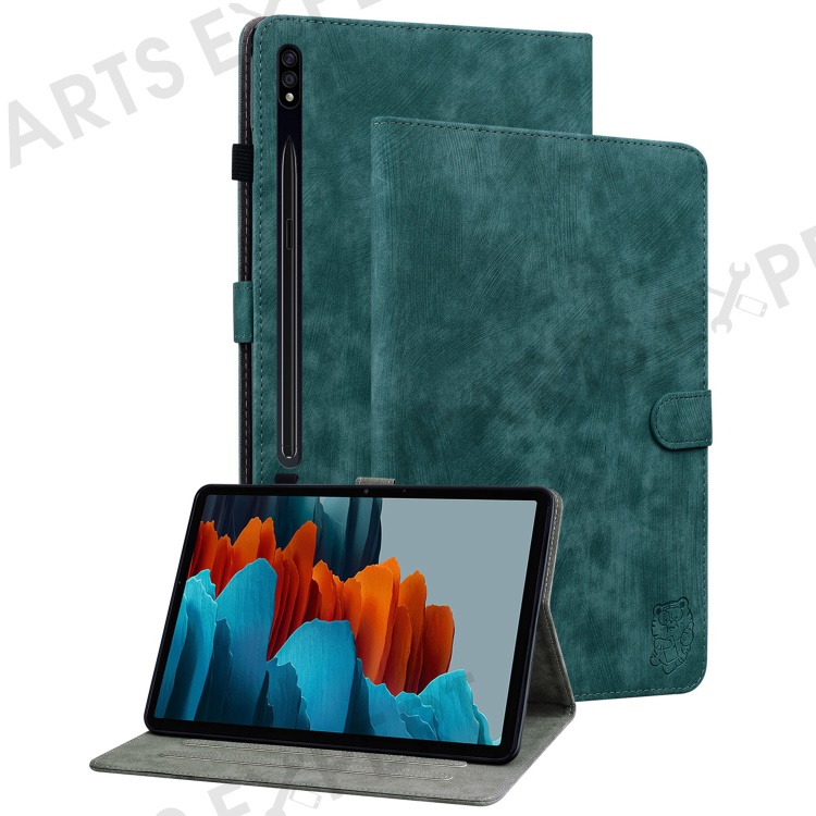 For Samsung Galaxy Tab S10+ / S9+ Imprinted Cute Tiger Pattern Tablet Case PU Leather Card Holder Stand Cover - Green