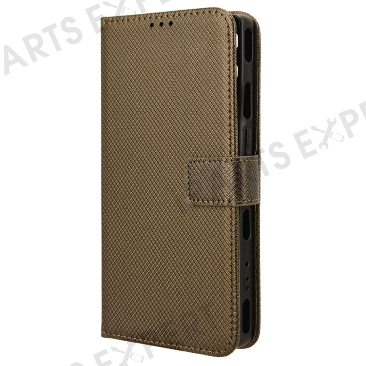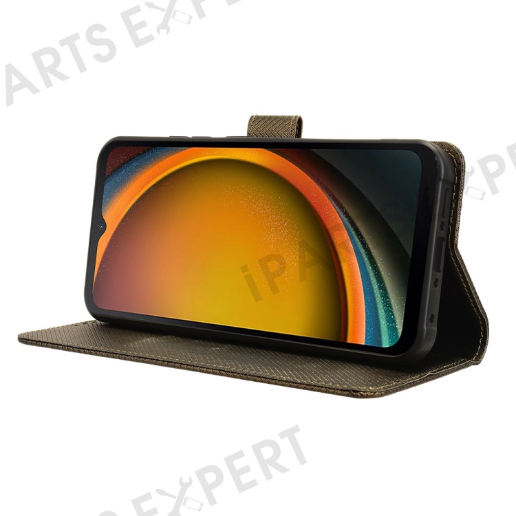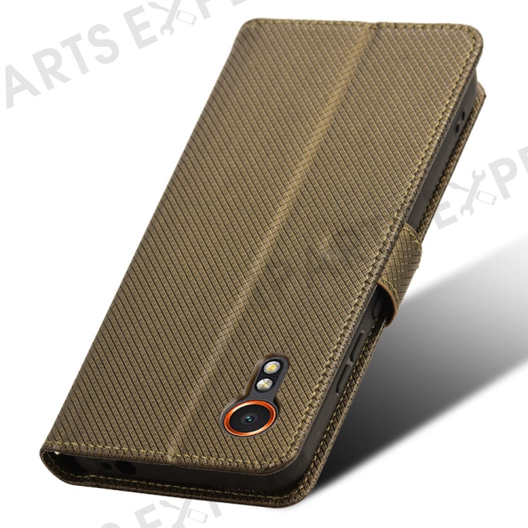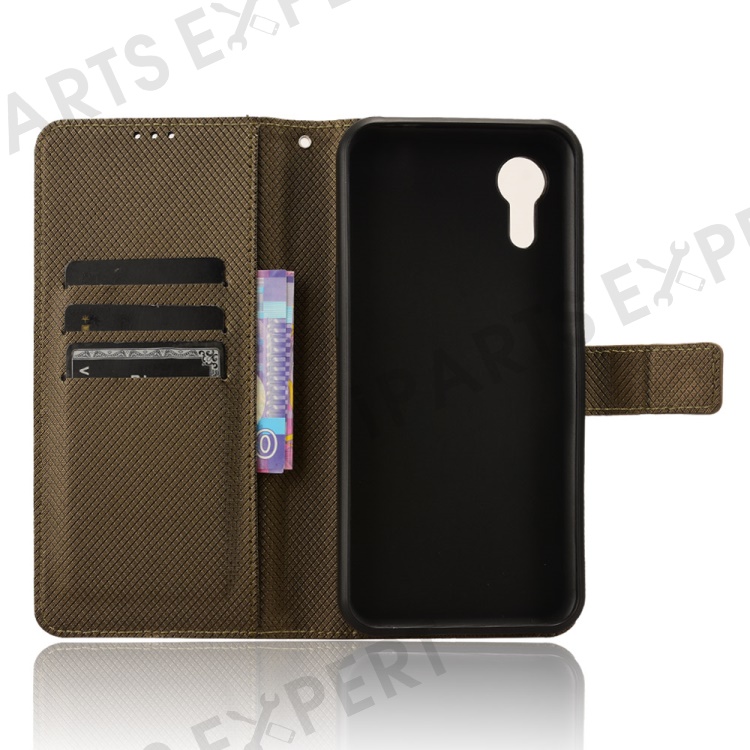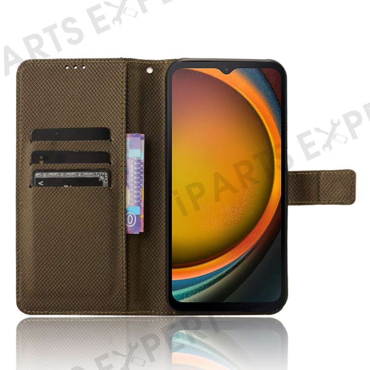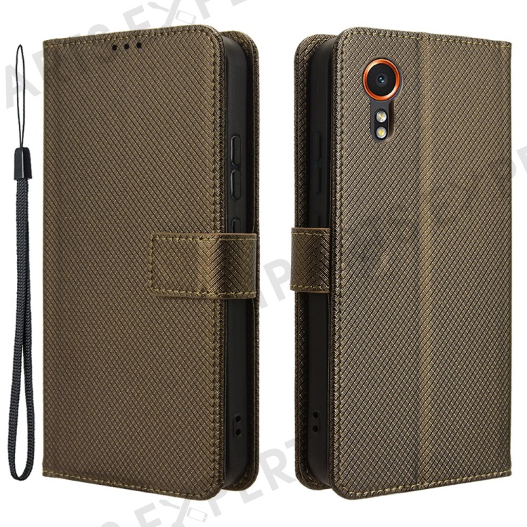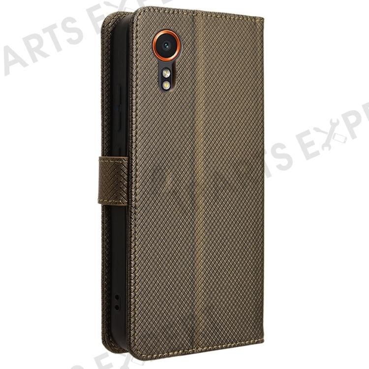 For Samsung Galaxy Xcover7 Case Diamond Texture Leather Phone Stand Cover - Brown