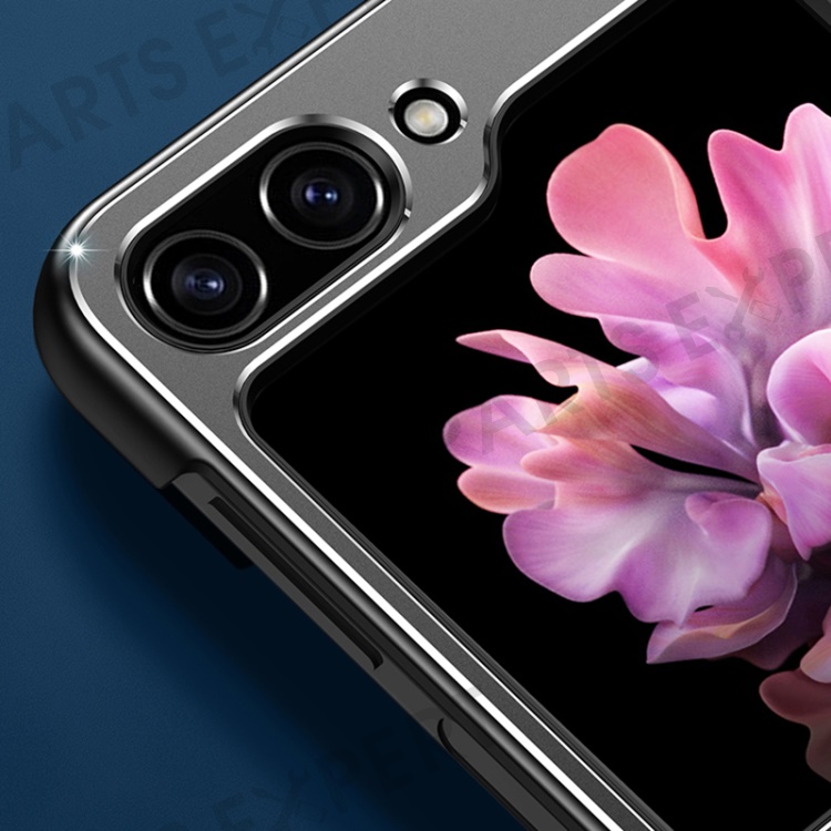 For Samsung Galaxy Z Flip 5G Case Metal+PC+TPU Matte Smartphone Cover - Black+Brushed Black