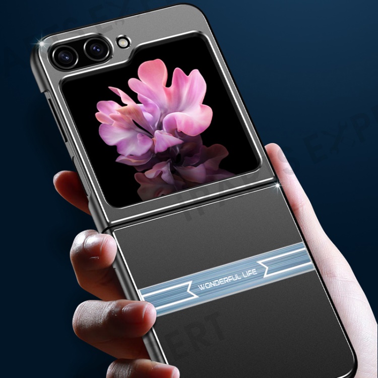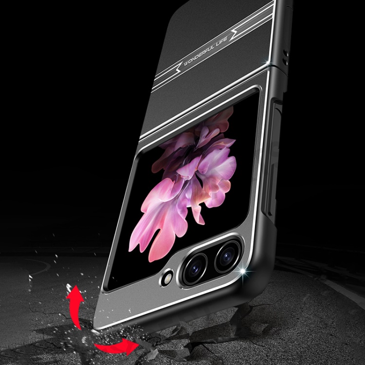 For Samsung Galaxy Z Flip 5G Case Metal+PC+TPU Matte Smartphone Cover - Black+Rose Gold