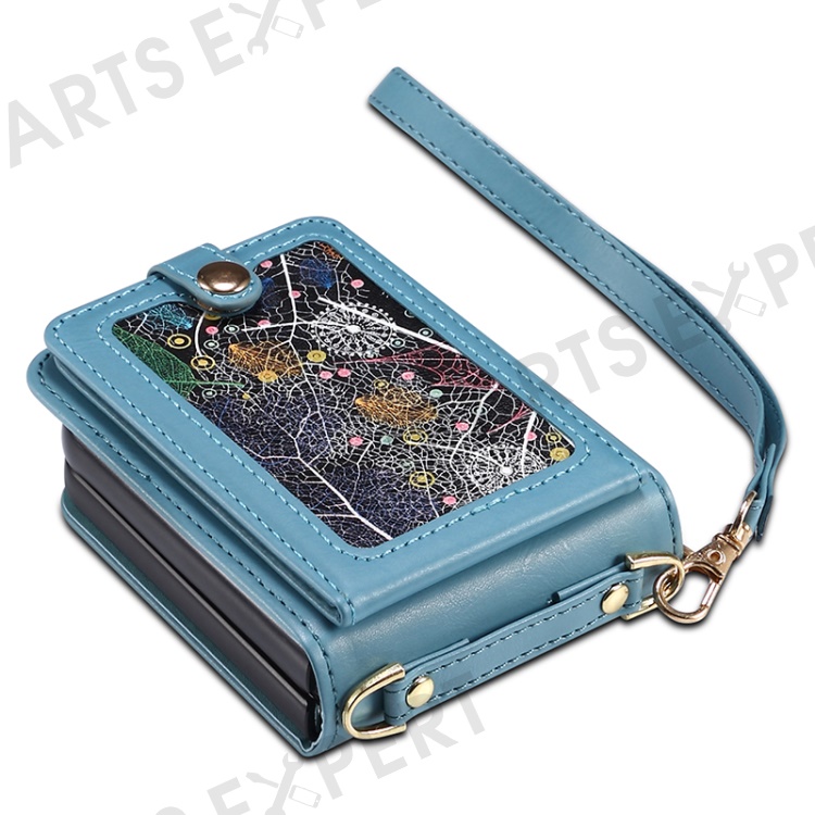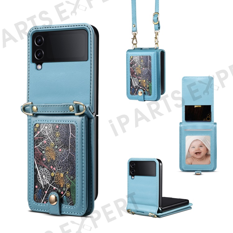 For Samsung Galaxy Z Flip3 5G Case Pattern Card Holder Phone Cover - Blue