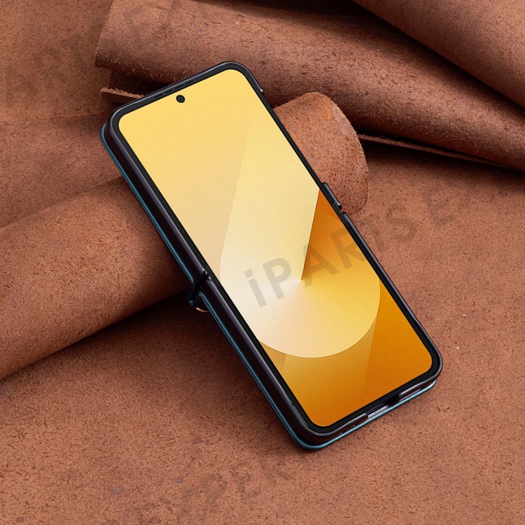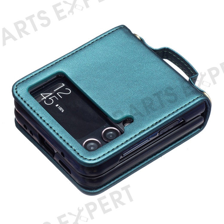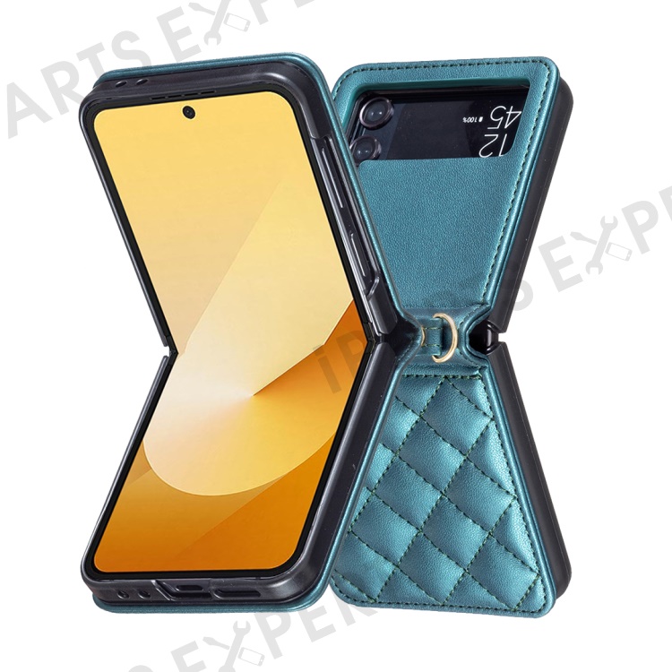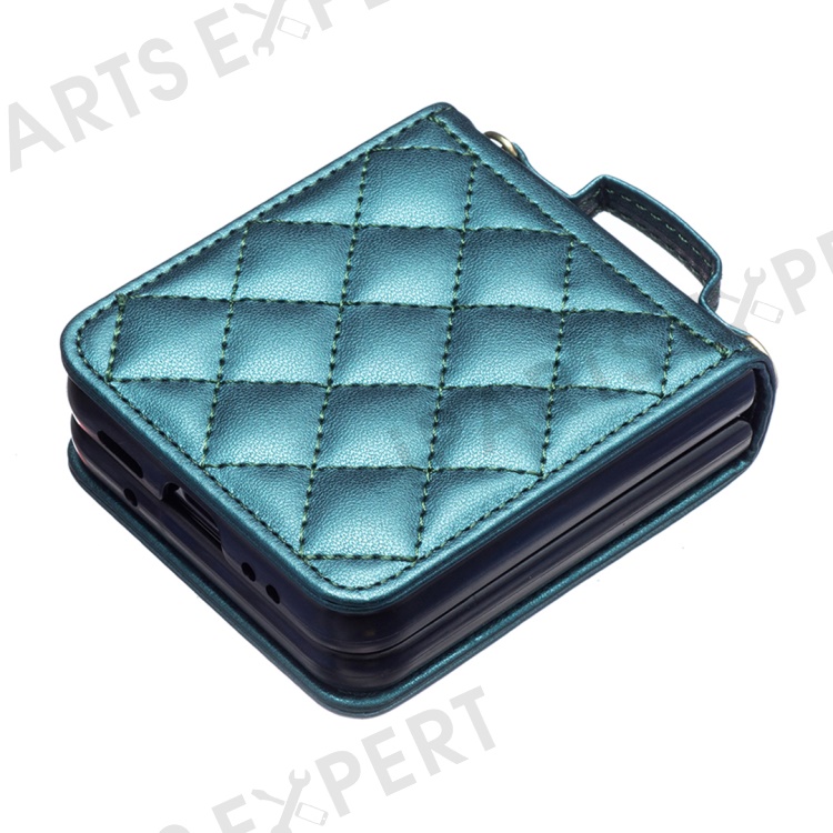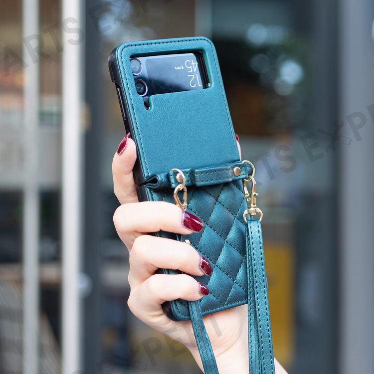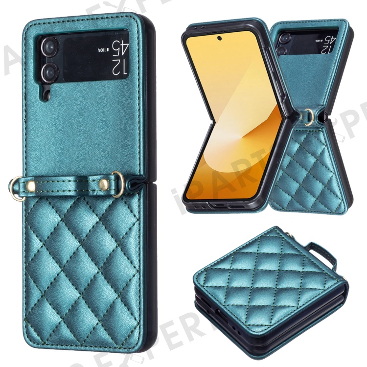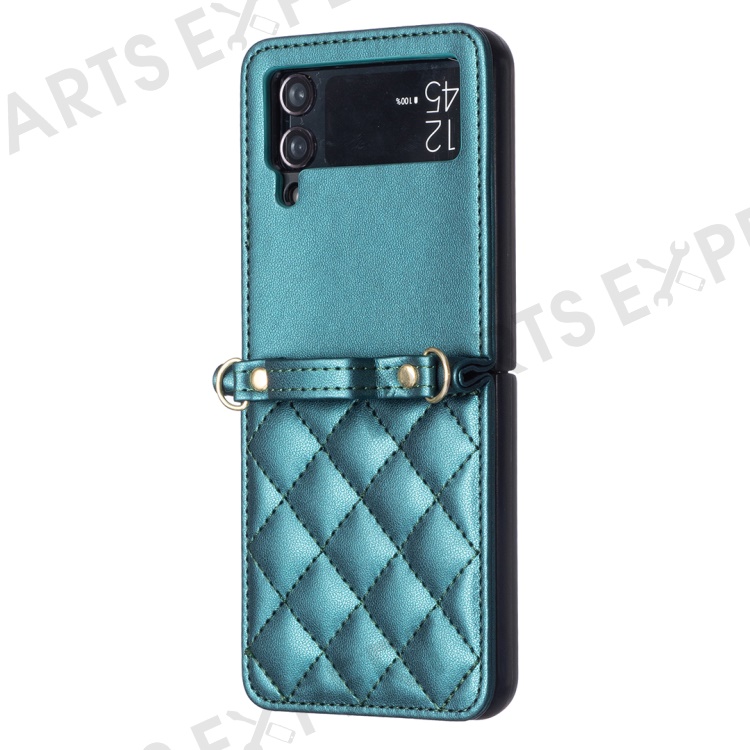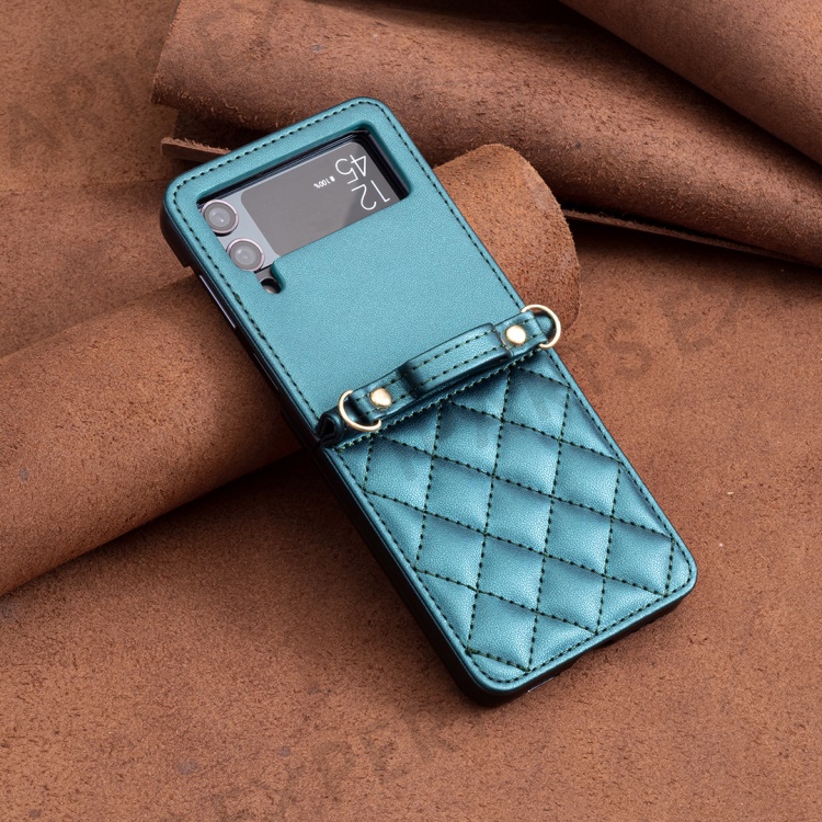 For Samsung Galaxy Z Flip4 5G Leather Back Case Rhombus Phone Cover with Shoulder Strap - Green