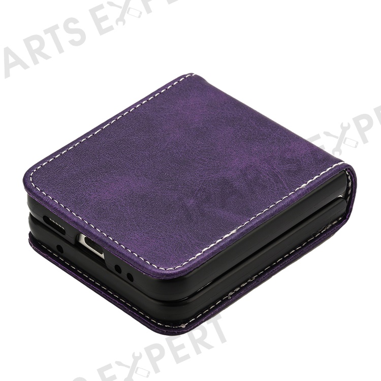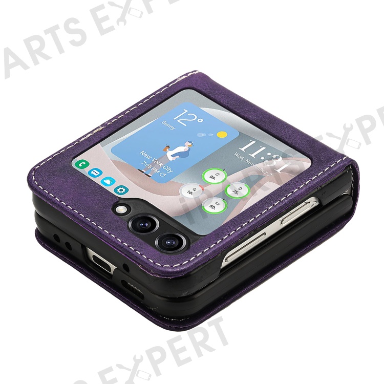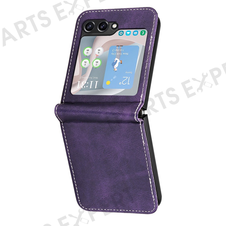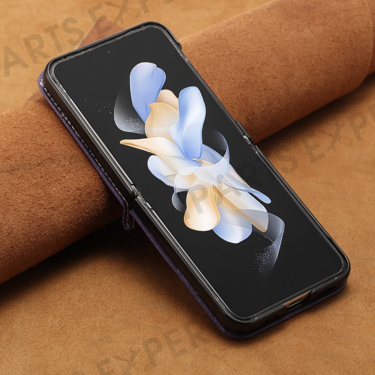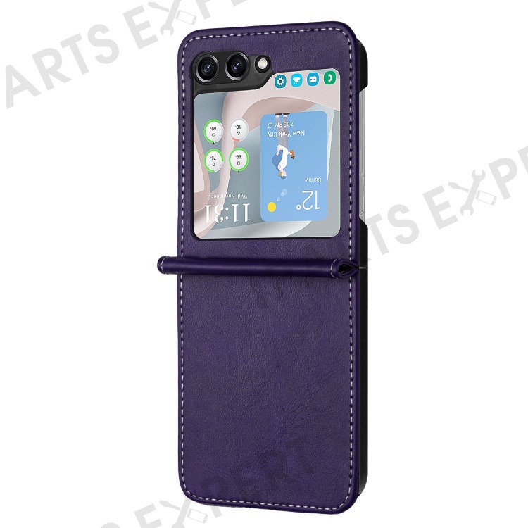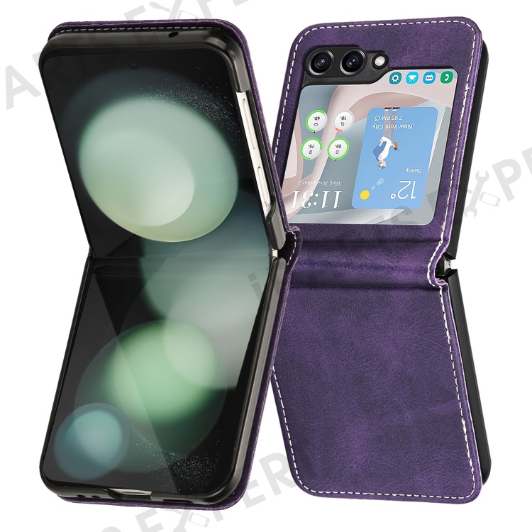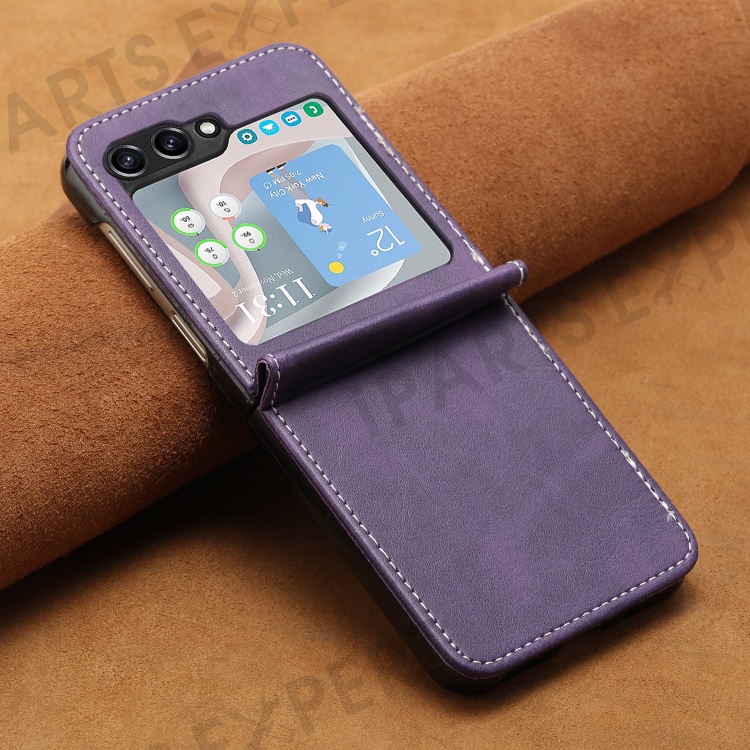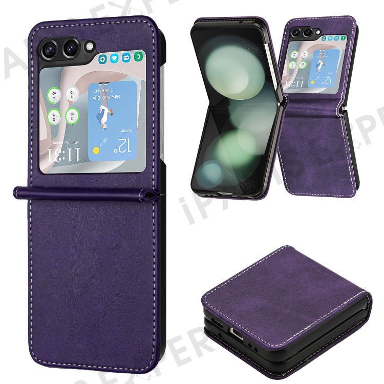 For Samsung Galaxy Z Flip5 5G Case Calf Texture PU Leather Shockproof Phone Cover - Purple