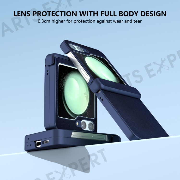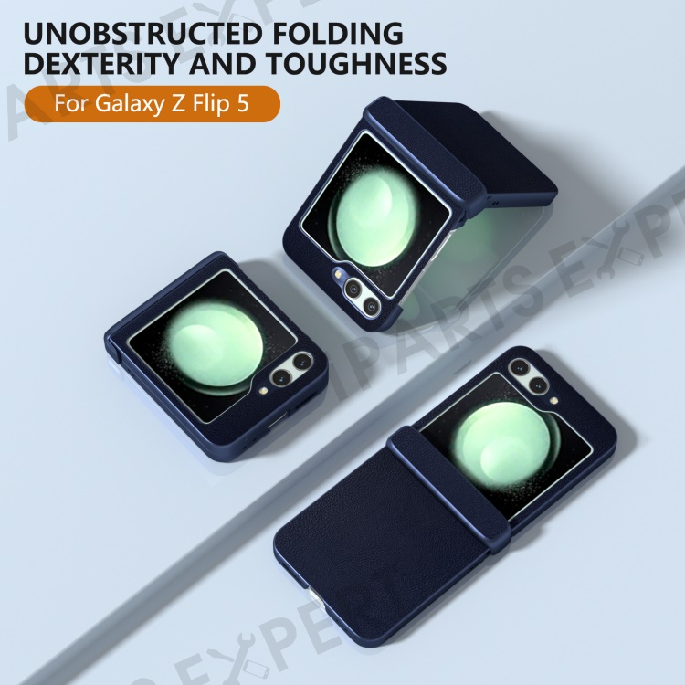 For Samsung Galaxy Z Flip5 5G Case Leather + PC Slim Phone Cover Hinge Protection - Dark Blue