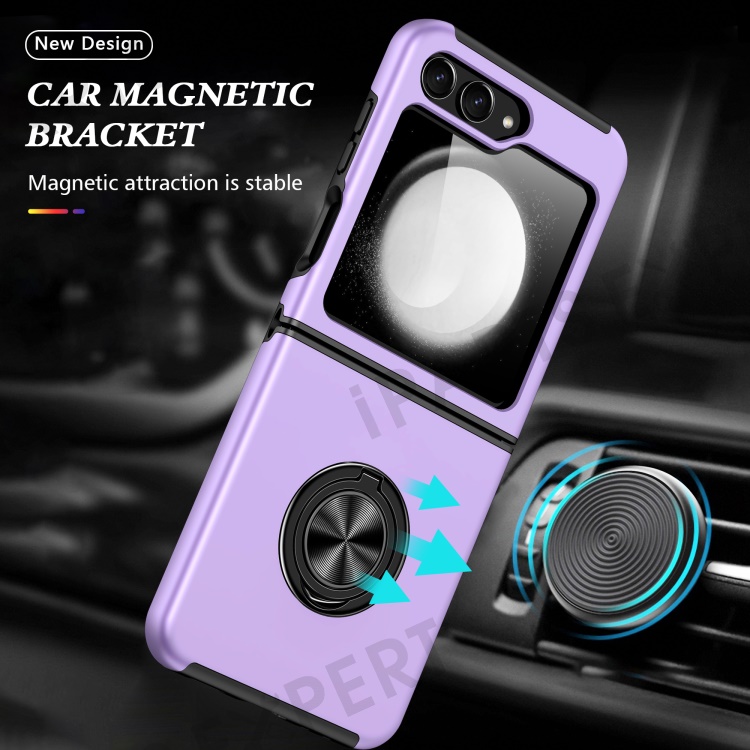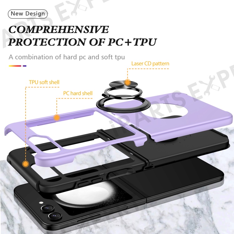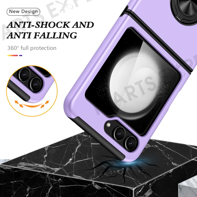 For Samsung Galaxy Z Flip5 5G Case PC+TPU Phone Cover with Ring Kickstand - Purple