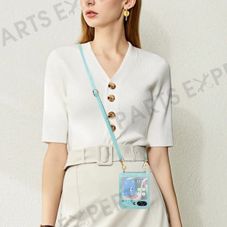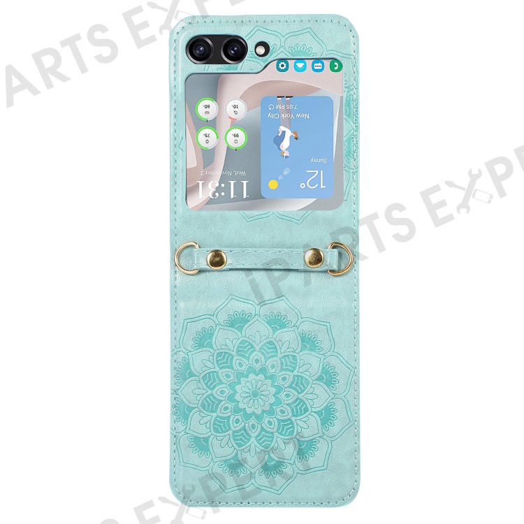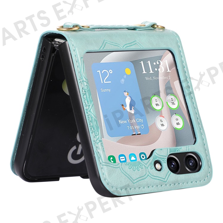 For Samsung Galaxy Z Flip5 5G Flower Imprinted Phone Case Anti-Drop PU Leather PC Cover with Shoulder Strap - Green
