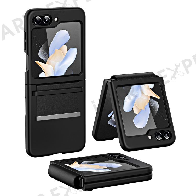 For Samsung Galaxy Z Flip5 5G Hard PC Phone Case Retractable Strap Hinge Protection Phone Cover - Black