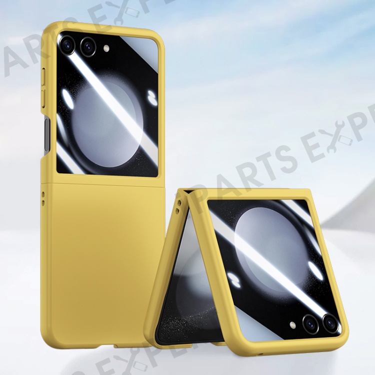 For Samsung Galaxy Z Flip5 5G PC Skin-touch Phone Case Anti-Scratch Cover with Small Screen Film - Yellow