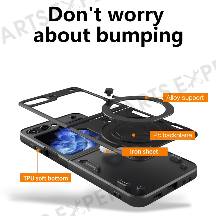 For Samsung Galaxy Z Flip5 5G PC+TPU Phone Case Rotating Kickstand Protective Cover - Blue