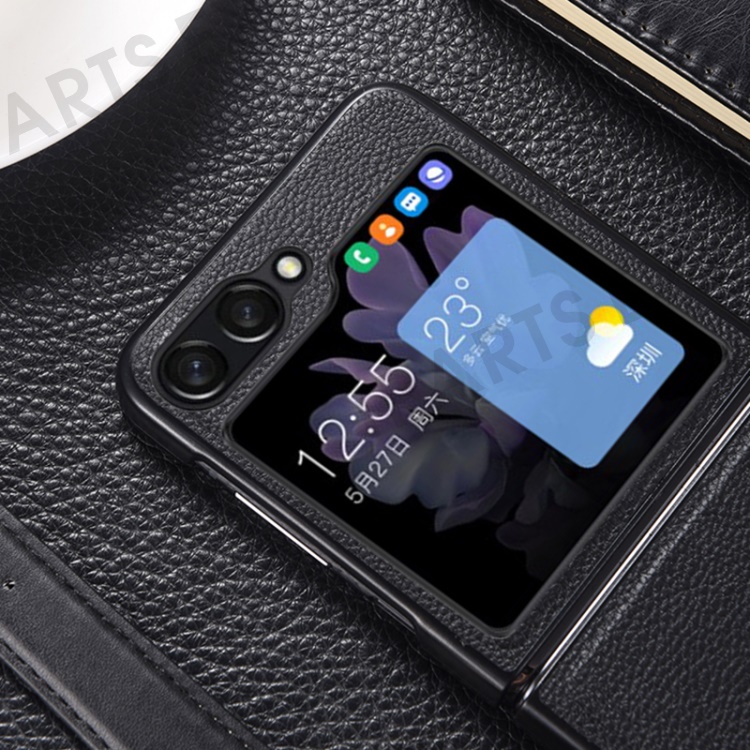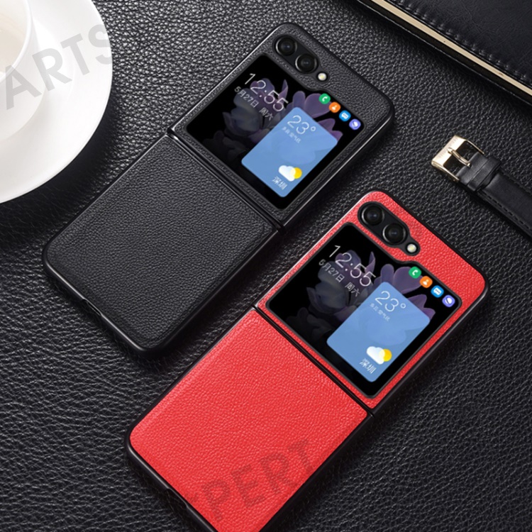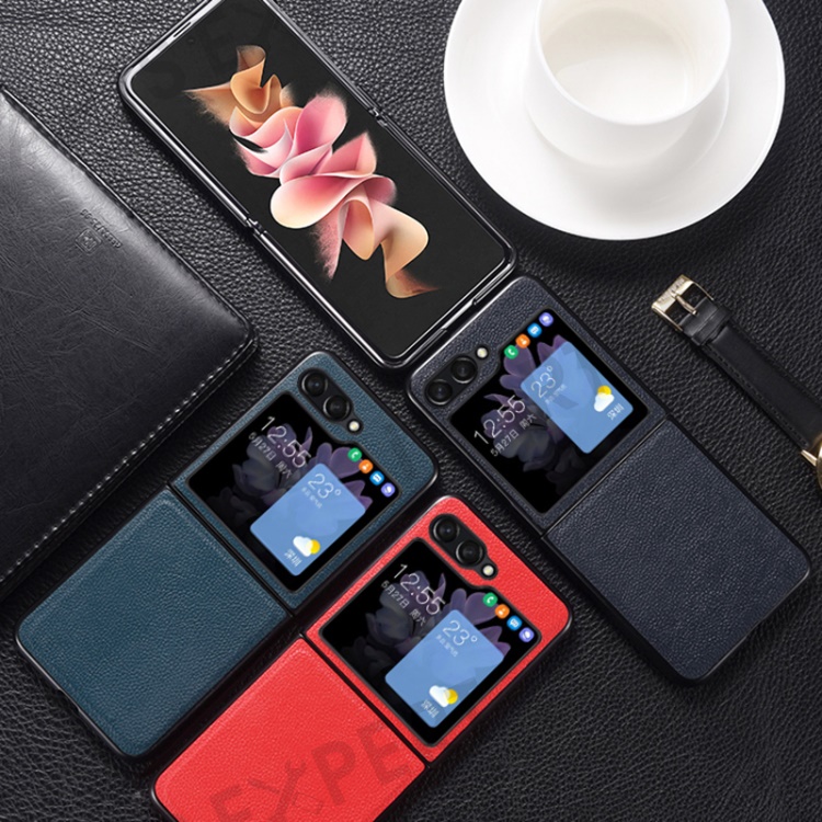 For Samsung Galaxy Z Flip5 5G Slim Phone Case Cowhide Leather + PC Non-Slip Shockproof Cover - Blue