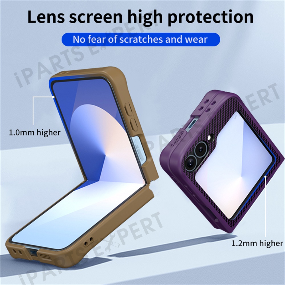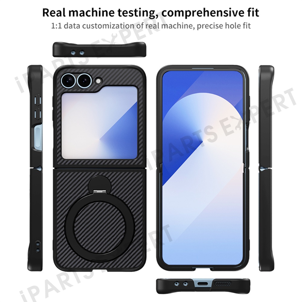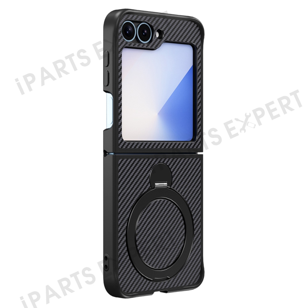 For Samsung Galaxy Z Flip7 FE 5G / Z Flip6 5G / Z Flip5 5G Phone Case with Magnetic Kickstand TPU + PC Carbon Fiber Back Cover - Black