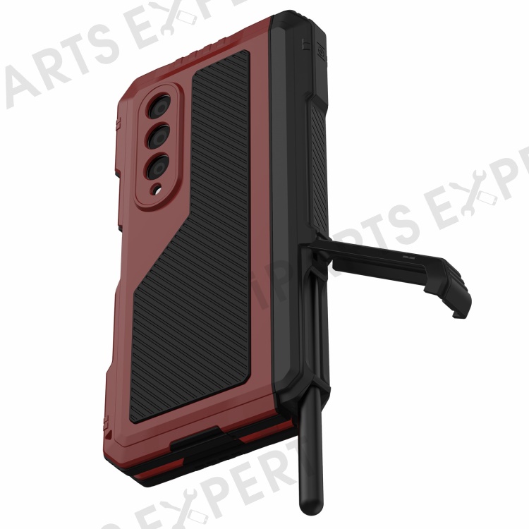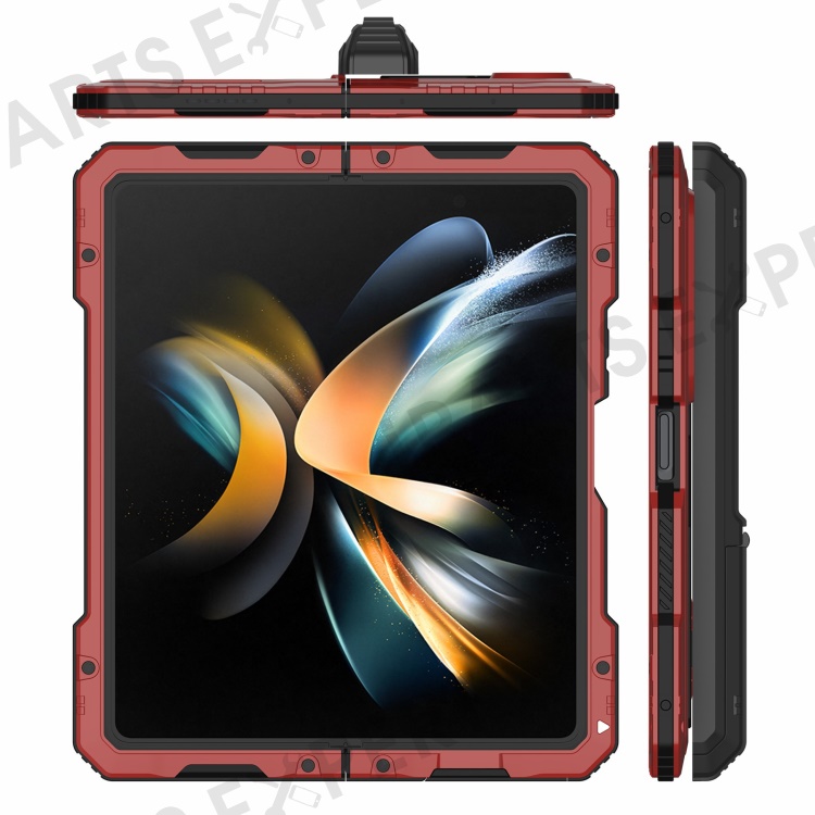 For Samsung Galaxy Z Fold4 5G Aluminium Alloy + Silicone Phone Case Shockproof Dustproof Kickstand Protective Cover with Screen Protector - Red