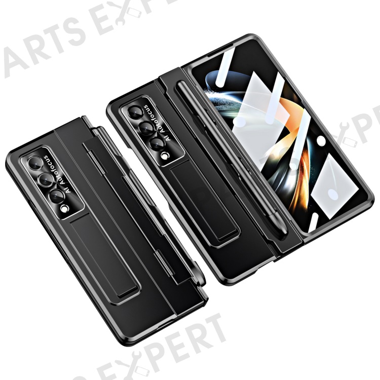 For Samsung Galaxy Z Fold4 5G Anti-drop Hard PC Back Cover Folding Phone Case with Stylus, Lens Film and Tempered Glass Screen Film - Black