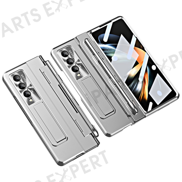For Samsung Galaxy Z Fold4 5G Anti-drop Hard PC Back Cover Folding Phone Case with Stylus, Lens Film and Tempered Glass Screen Film - Silver