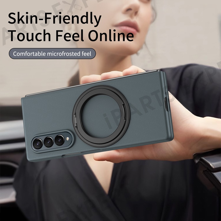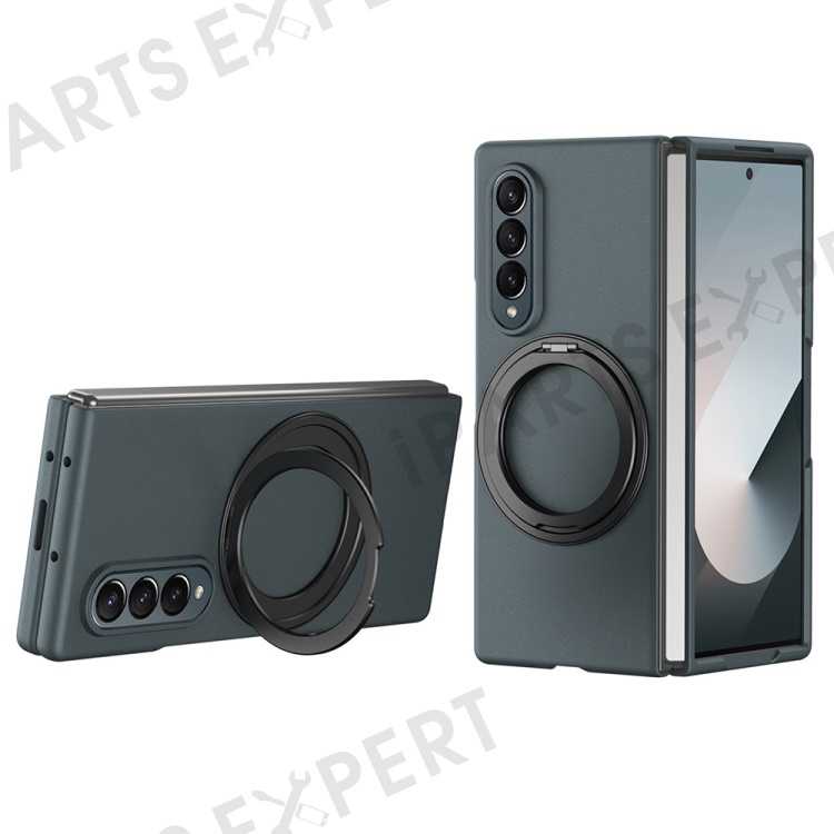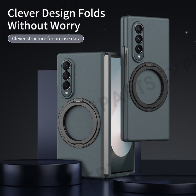 For Samsung Galaxy Z Fold4 5G Magnetic Case Ring Kickstand Hard PC Cover with Tempered Glass Screen Film - Green