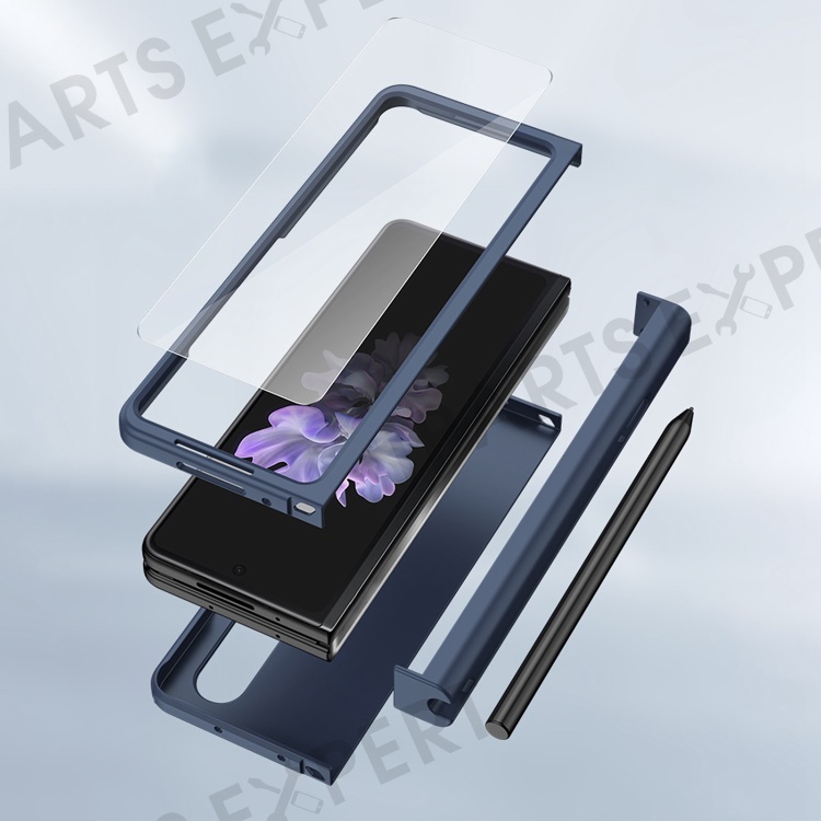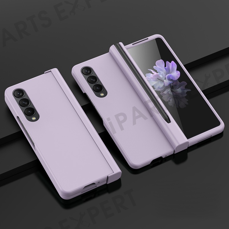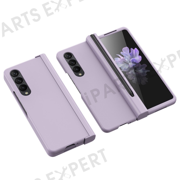For Samsung Galaxy Z Fold4 5G Phone Case Rubberized Surface Hard PC Cover with Glass Screen Protector / Pen Slot - Purple