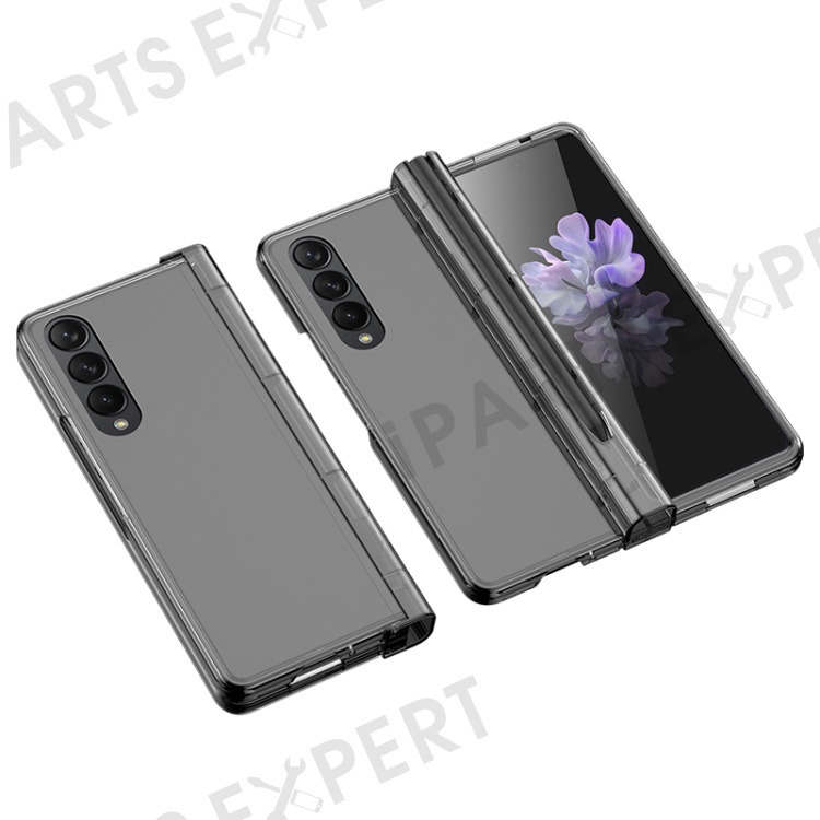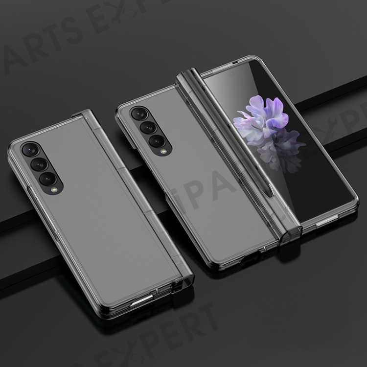 For Samsung Galaxy Z Fold4 5G Phone Case Rubberized Surface Hard PC Cover with Glass Screen Protector / Pen Slot - Transparent