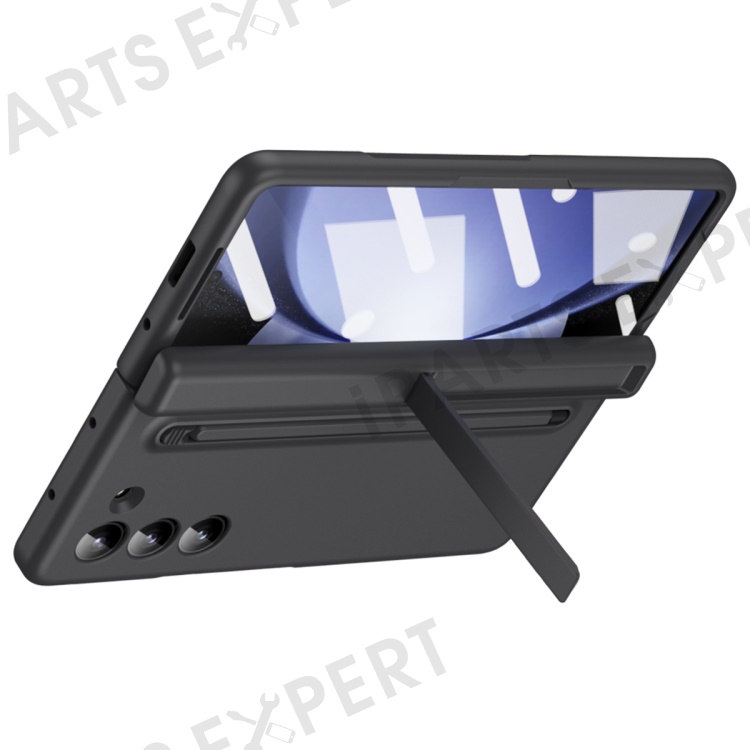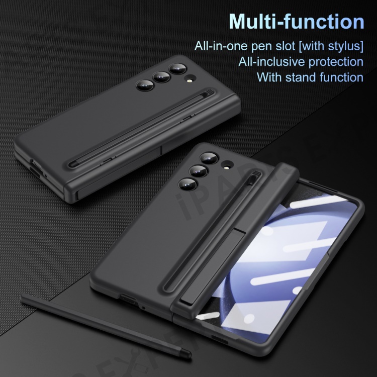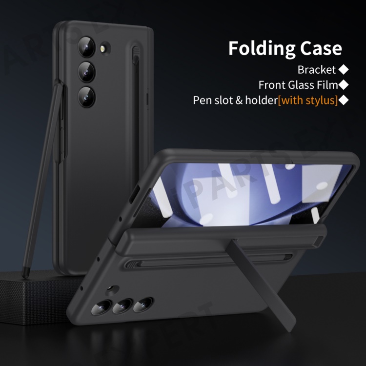 For Samsung Galaxy Z Fold5 5G Full Guard Case Hard PC Kickstand Phone Cover with Glass Film, Stylus - Black