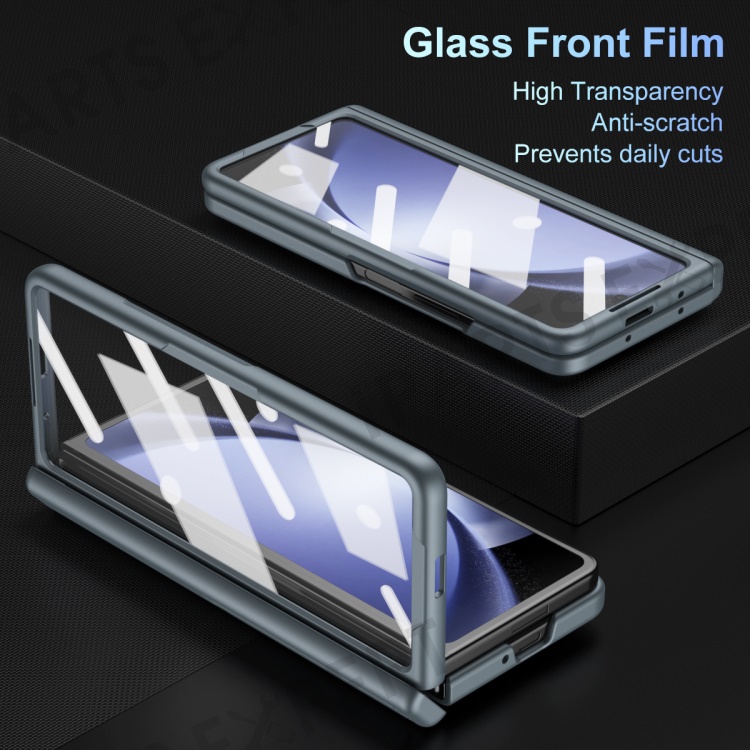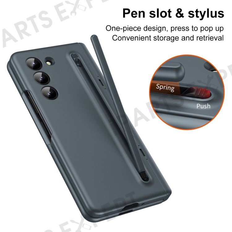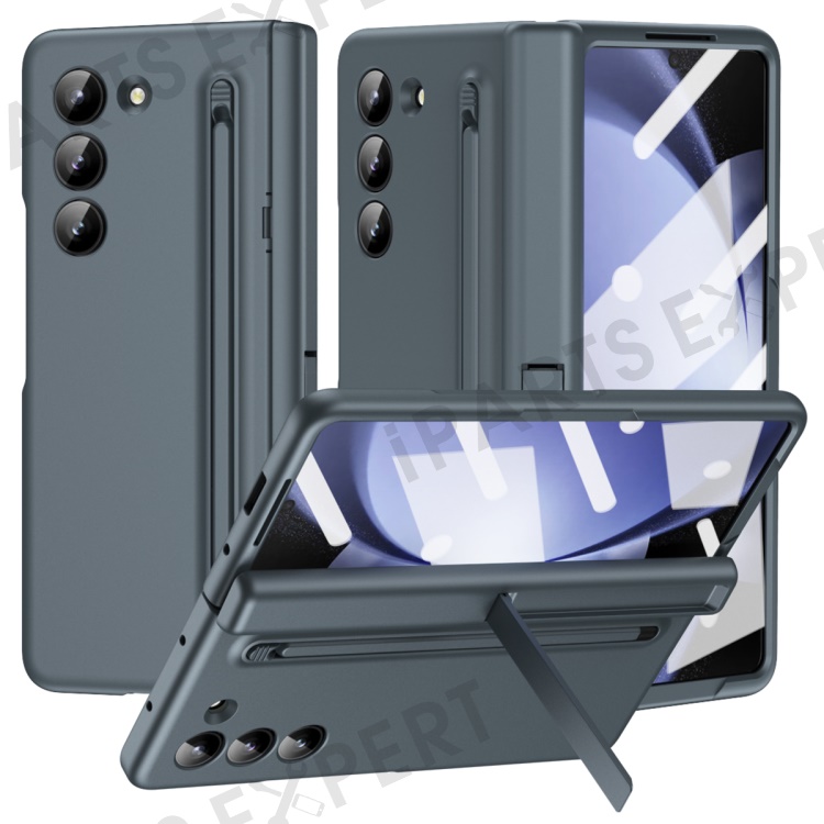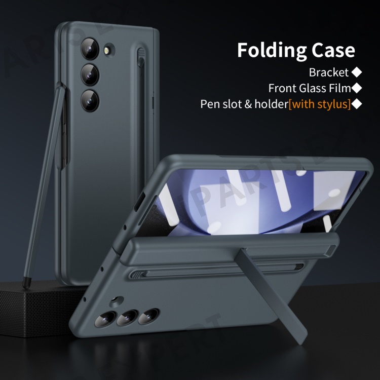 For Samsung Galaxy Z Fold5 5G Full Guard Case Hard PC Kickstand Phone Cover with Glass Film, Stylus - Green
