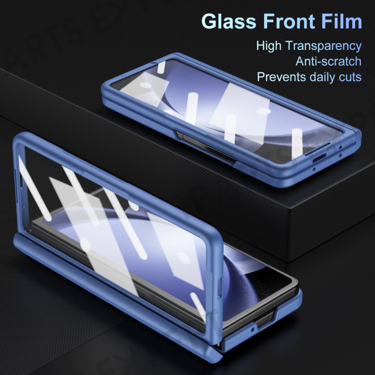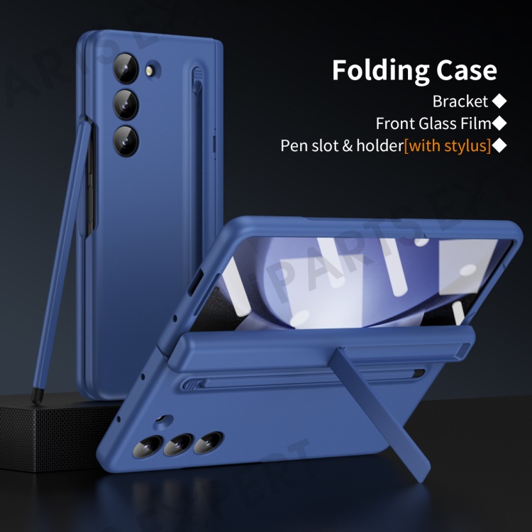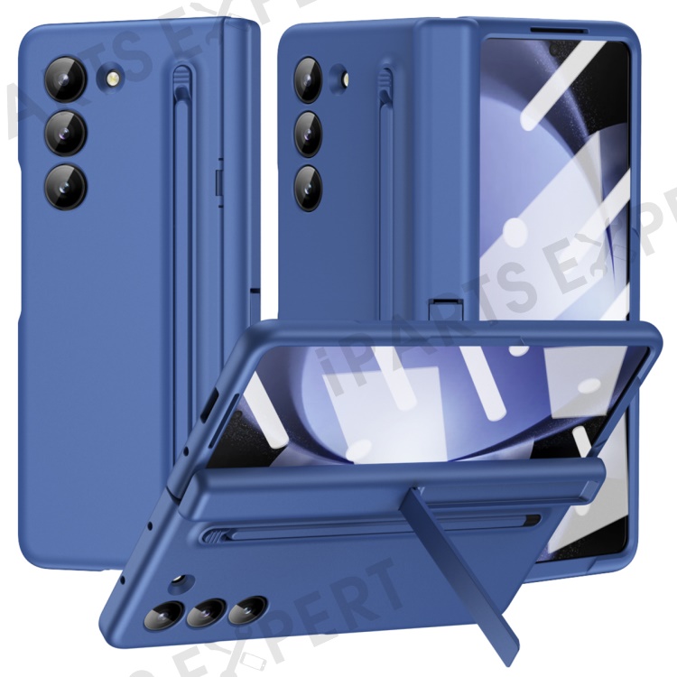 For Samsung Galaxy Z Fold5 5G Full Guard Case Hard PC Kickstand Phone Cover with Glass Film, Stylus - Sapphire