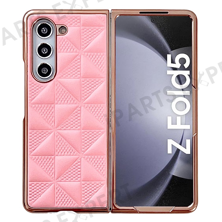 For Samsung Galaxy Z Fold5 5G PU Leather Coated PC Phone Case Grid Pattern Electroplating Cover - Pink