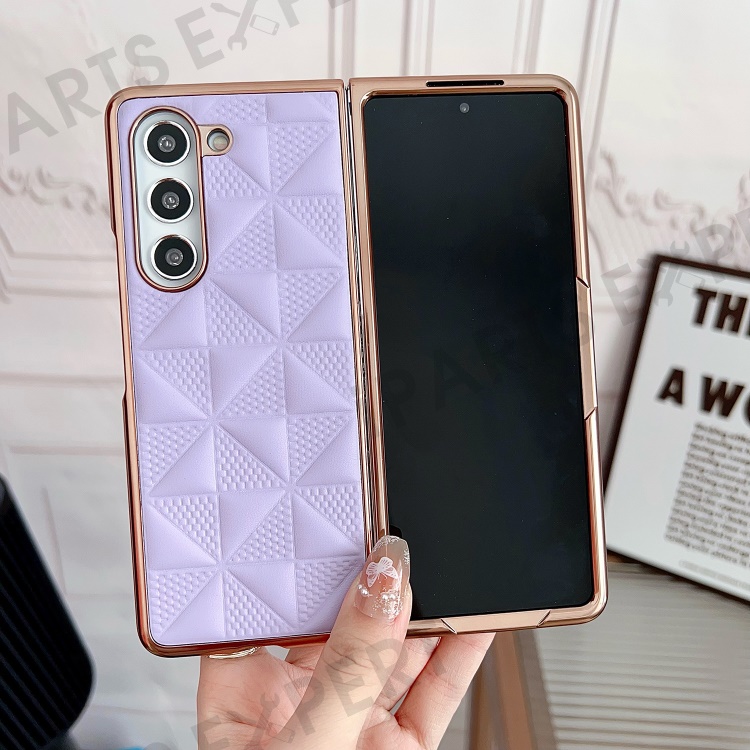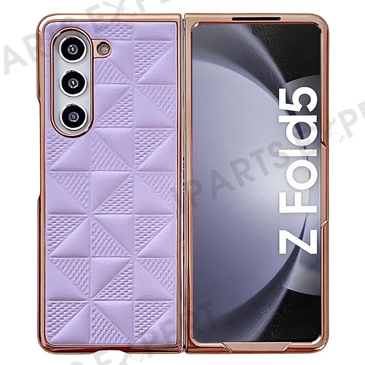 For Samsung Galaxy Z Fold5 5G PU Leather Coated PC Phone Case Grid Pattern Electroplating Cover - Purple