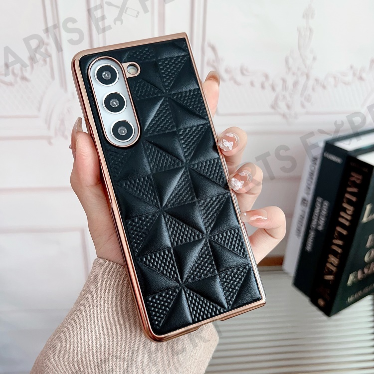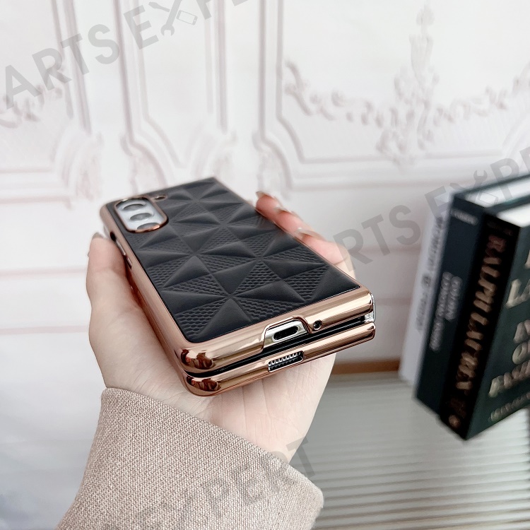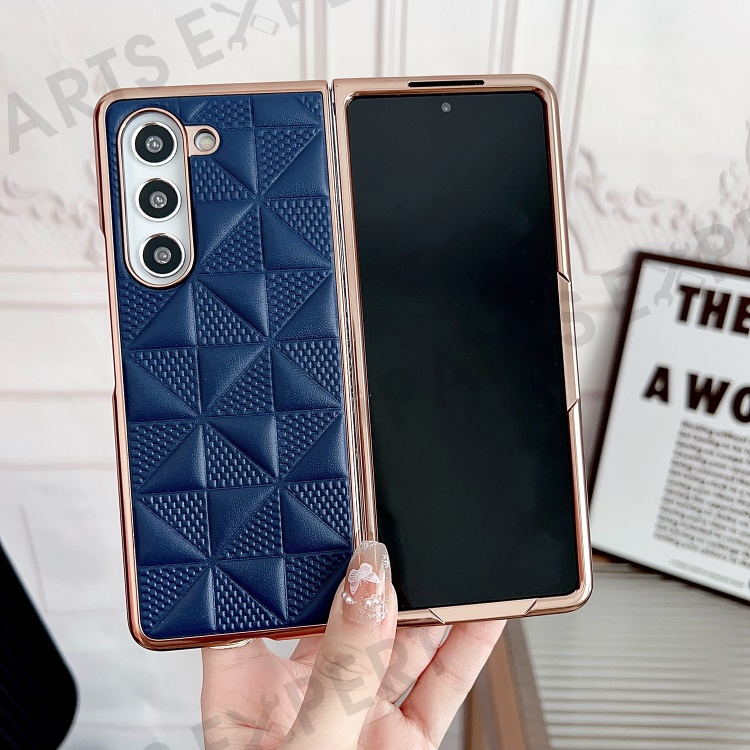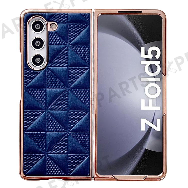 For Samsung Galaxy Z Fold5 5G PU Leather Coated PC Phone Case Grid Pattern Electroplating Cover - Sapphire